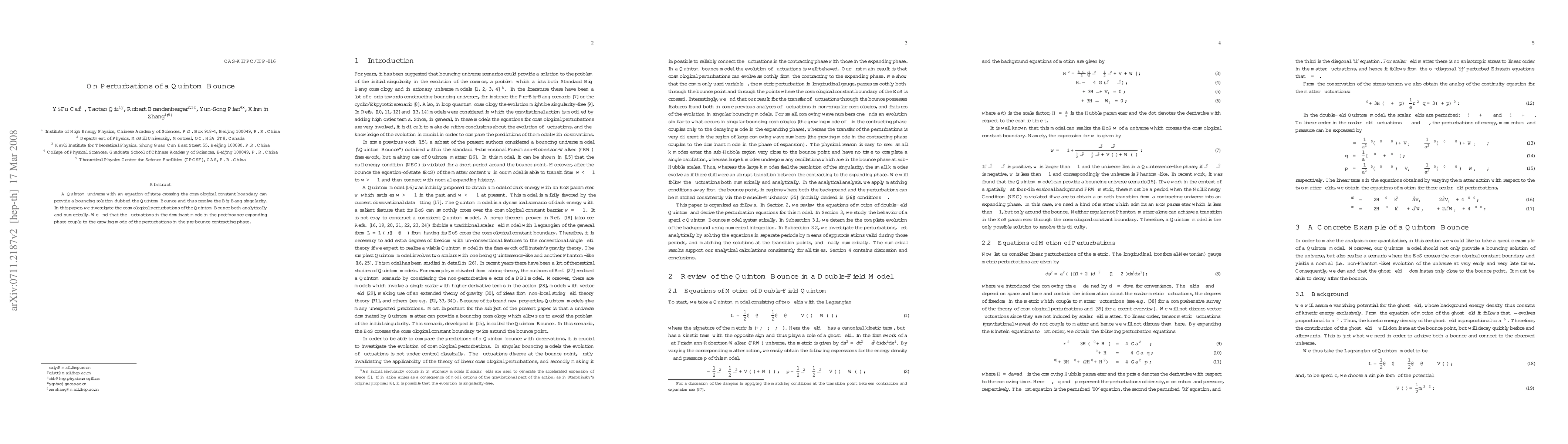 This paper explores the cosmological perturbations of a Quintom Bounce, a solution resolving the Big Bang singularity. It finds that fluctuations in the post-bounce expansion phase are linked to the growing perturbations in the pre-bounce contraction phase, both analytically and numerically.