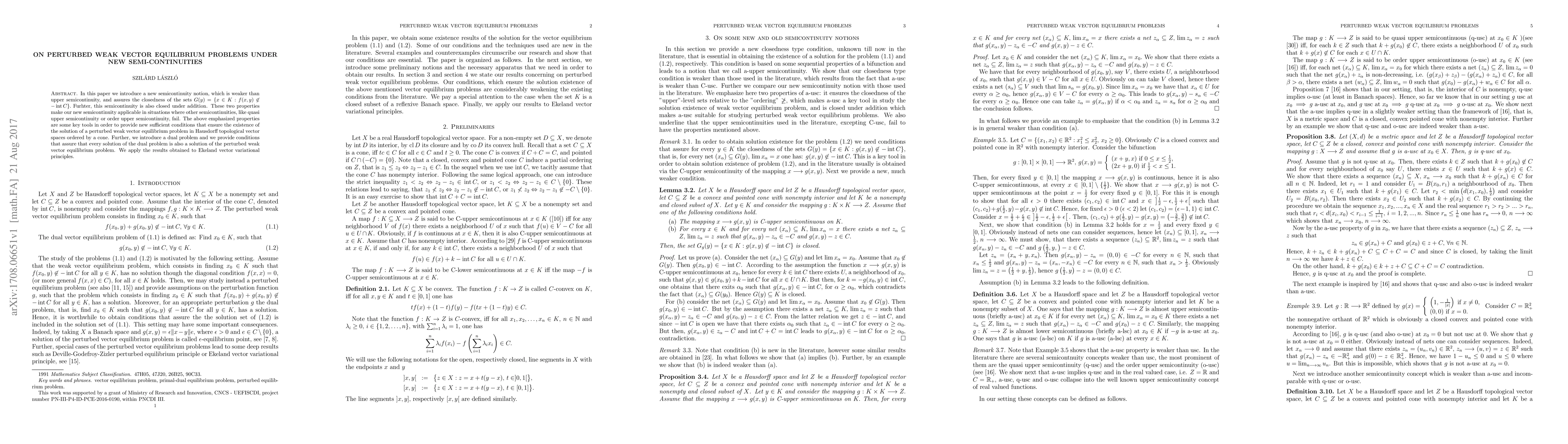 This paper introduces a new semicontinuity notion that ensures the existence of solutions to perturbed weak vector equilibrium problems in Hausdorff topological vector spaces, providing conditions for both existence and duality.