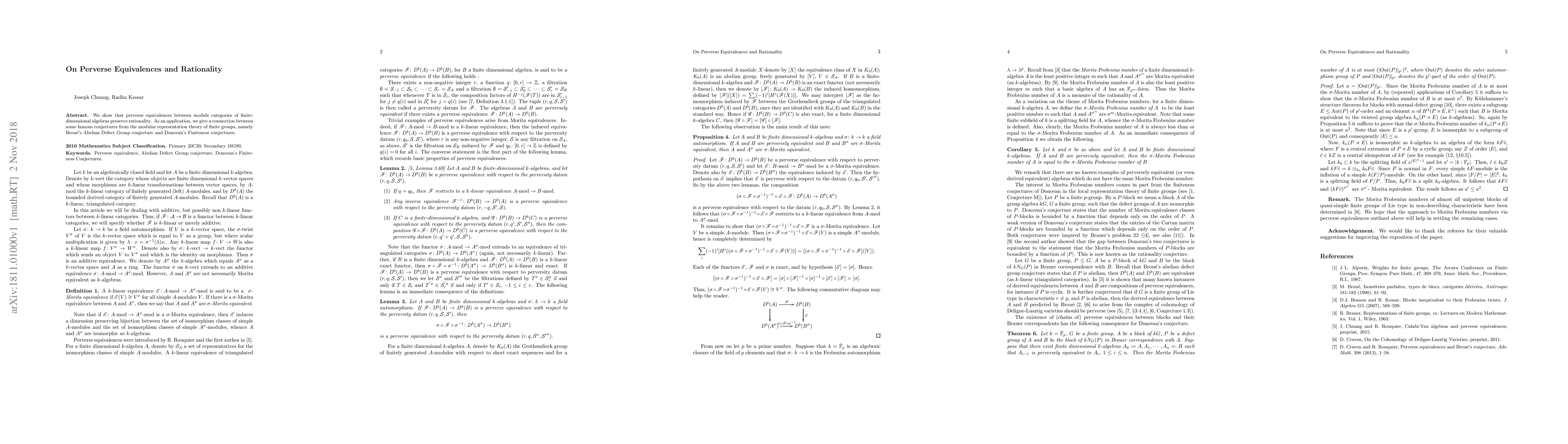 This paper demonstrates that perverse equivalences maintain rationality in module categories of finite-dimensional algebras and links these findings to Broué's Abelian Defect Group conjecture and Donovan's Finiteness conjectures in modular representation theory.