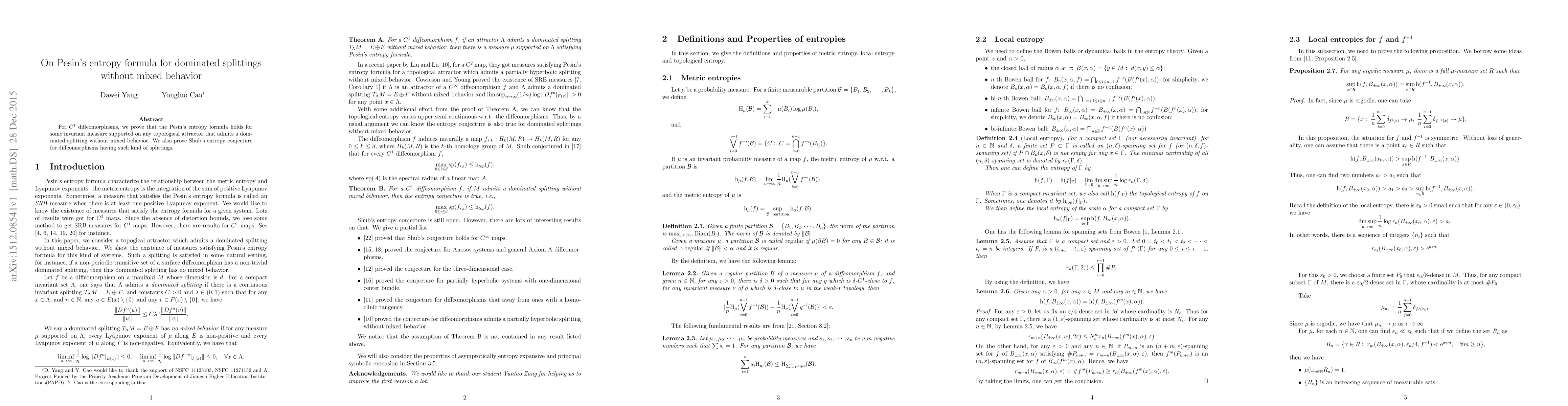The paper proves Pesin's entropy formula for $C^1$ diffeomorphisms on topological attractors with dominated splittings without mixed behavior and verifies Shub's entropy conjecture for such systems.