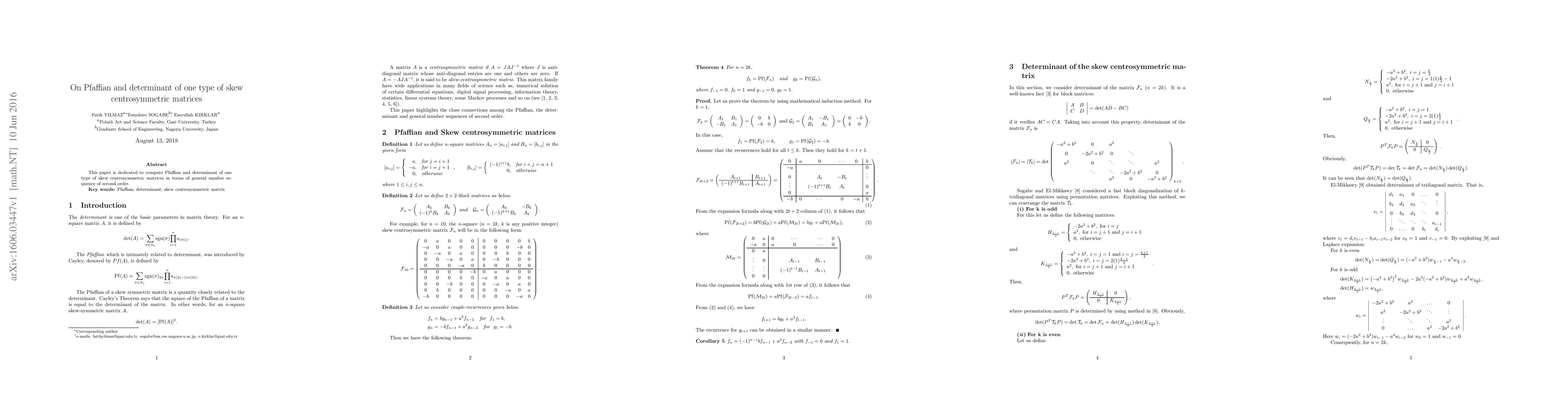 Summary: This paper computes the Pfaffian and determinant of a specific type of skew centrosymmetric matrices, expressing them in terms of a general second-order number sequence. The findings provide a new analytical framework for understanding these matrices.