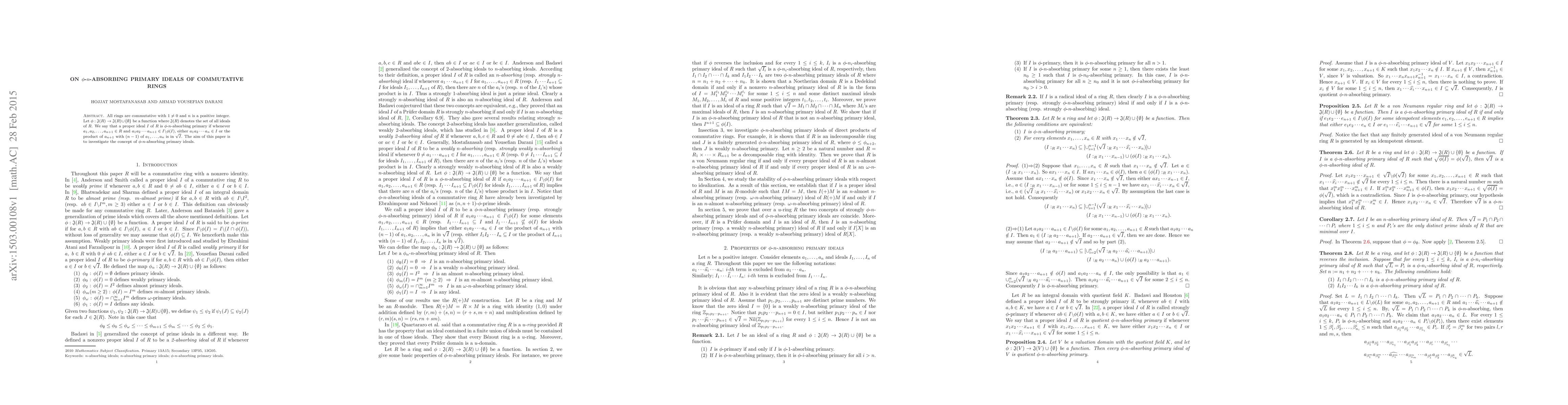 The paper introduces and rigorously defines \phi-n-absorbing primary ideals, extending the concept of n-absorbing primary ideals, and establishes their properties and relationships with other ideal types.