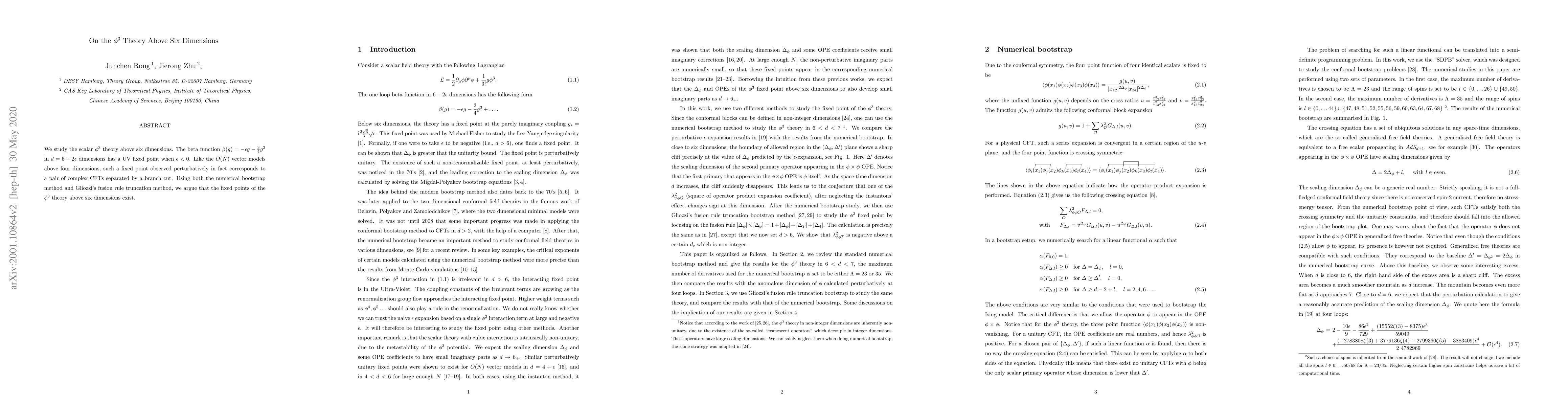 This paper investigates the scalar $\phi^3$ theory in dimensions greater than six, revealing a UV fixed point in $d=6-2\epsilon$ dimensions when $\epsilon<0$. The authors use both numerical bootstrap and Gliozzi's fusion rule to argue for the existence of this fixed point, analogous to $O(N)$ vector models.