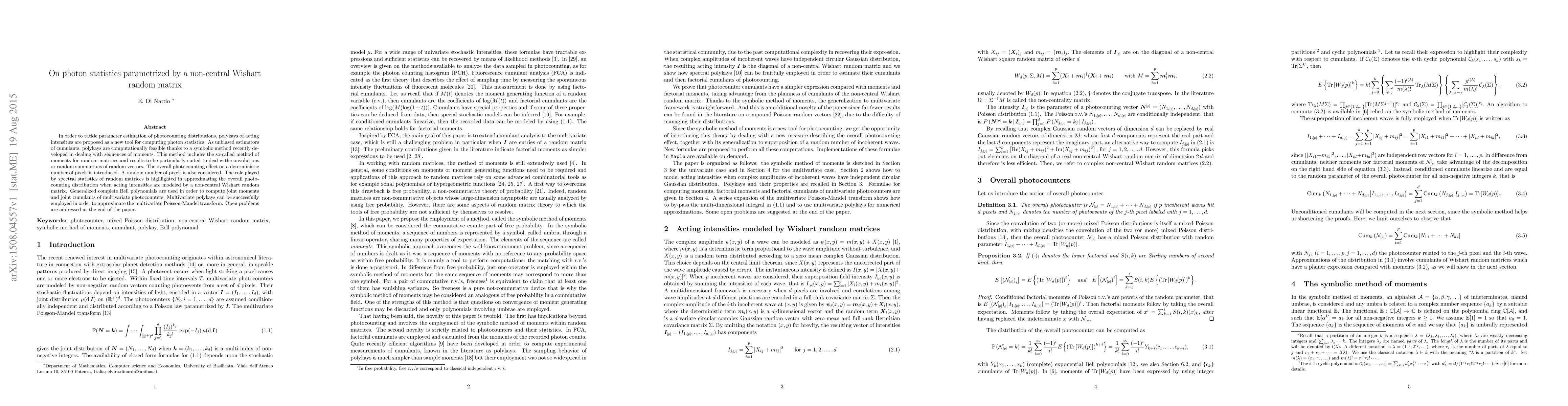 In order to tackle parameter estimation of photocounting distributions, polykays of acting intensities are proposed as a new tool for computing photon statistics. As unbiased estimators of cumulants, polykays are computationally feasible thanks to a symbolic method recently developed in dealing with sequences of moments. This method includes the so-called method of moments for random matrices and results to be particularly suited to deal with convolutions or random summations of random vectors. The overall photocounting effect on a deterministic number of pixels is introduced. A random number of pixels is also considered. The role played by spectral statistics of random matrices is highlighted in approximating the overall photocounting distribution when acting intensities are modeled by a non-central Wishart random matrix. Generalized complete Bell polynomials are used in order to compute joint moments and joint cumulants of multivariate photocounters. Multivariate polykays can be successfully employed in order to approximate the multivariate Mendel-Poisson transform. Open problems are addressed at the end of the paper.