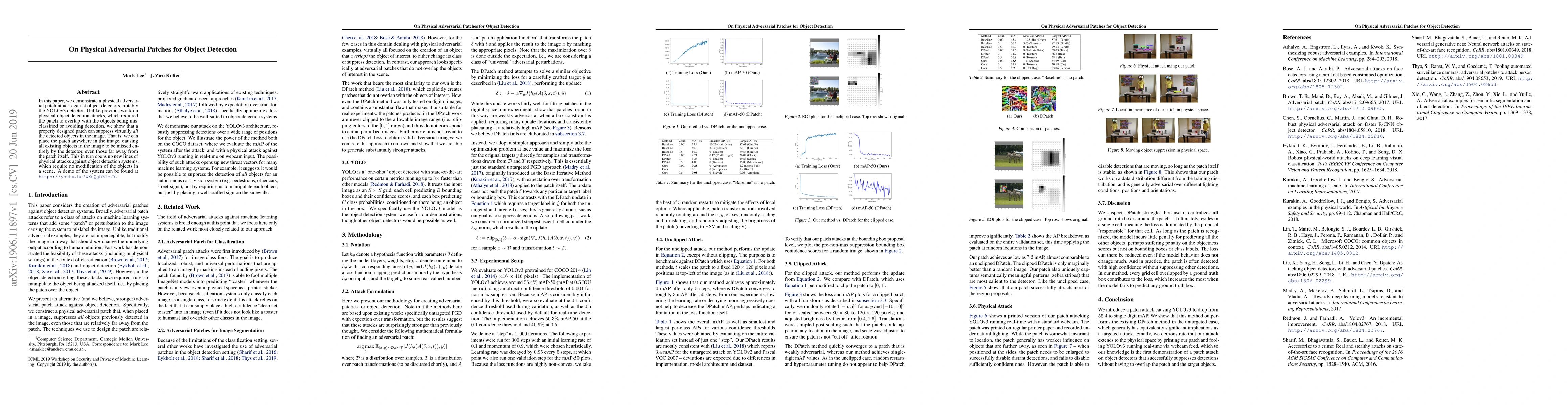 In this paper, we demonstrate a physical adversarial patch attack against object detectors, notably the YOLOv3 detector. Unlike previous work on physical object detection attacks, which required the patch to overlap with the objects being misclassified or avoiding detection, we show that a properly designed patch can suppress virtually all the detected objects in the image. That is, we can place the patch anywhere in the image, causing all existing objects in the image to be missed entirely by the detector, even those far away from the patch itself. This in turn opens up new lines of physical attacks against object detection systems, which require no modification of the objects in a scene. A demo of the system can be found at https://youtu.be/WXnQjbZ1e7Y.
