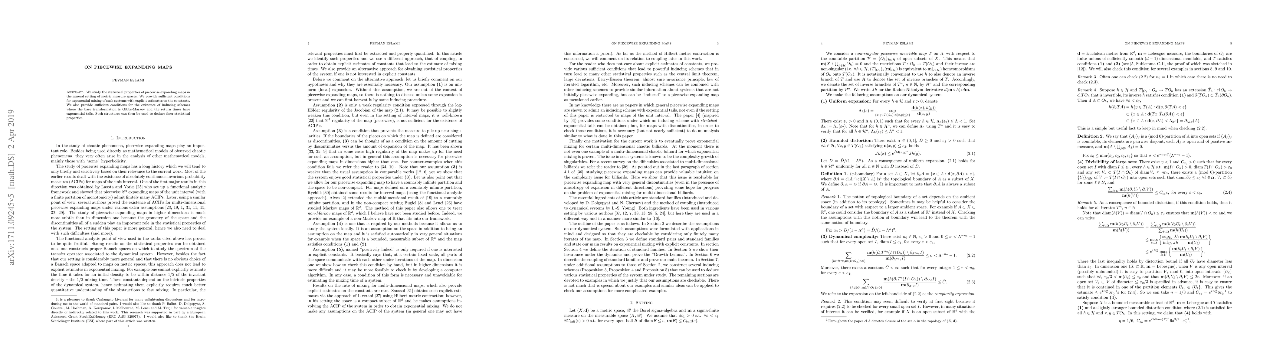 We study the statistical properties of piecewise expanding maps in the general setting of metric measure spaces. We provide sufficient conditions for exponential mixing of such systems with explicit estimates on the constants. We also provide sufficient conditions for the existence of inducing schemes where the base transformation is Gibbs-Markov and the return times have exponential tails. Such structures can then be used to deduce finer statistical properties.