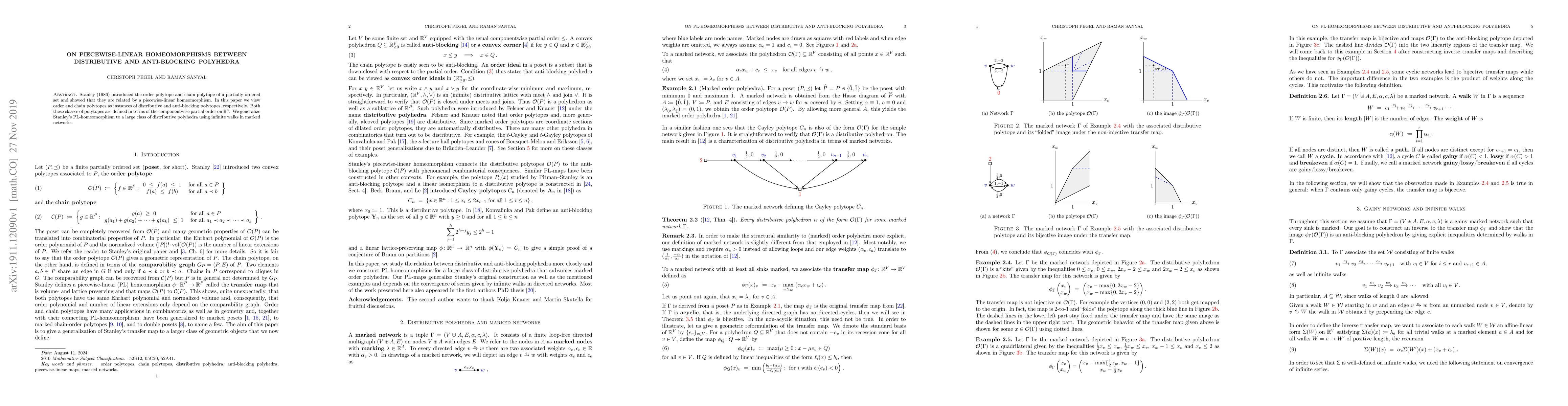 Researchers generalize a piecewise-linear homeomorphism to relate distributive polyhedra to anti-blocking polyhedra using infinite walks in marked networks. They build on Stanley's work from 1986 to create a broader connection between these types of polytopes.