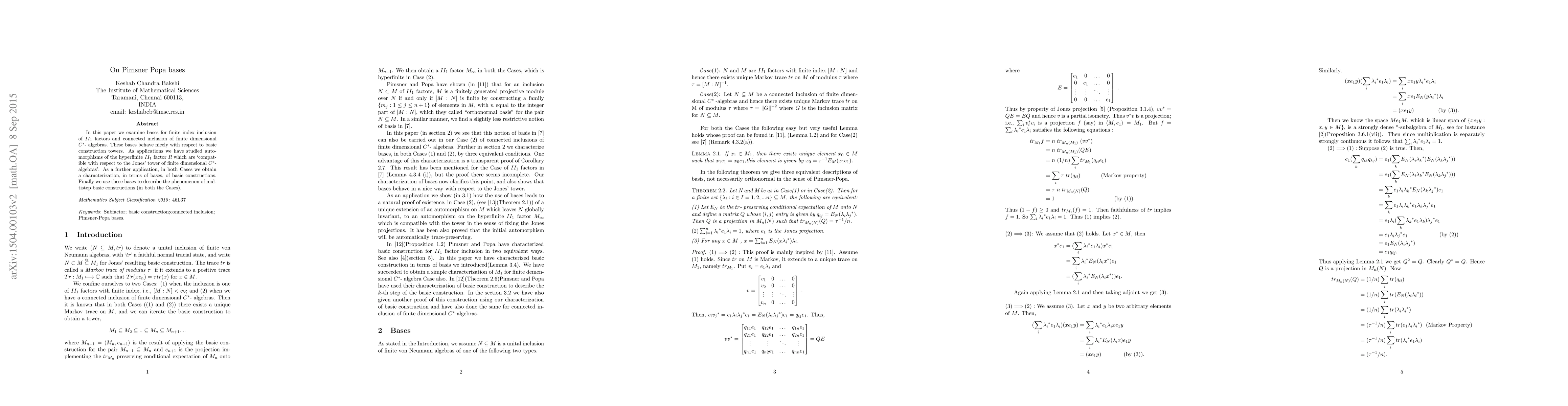 In this paper we examine bases for finite index inclusion of $II_1$ factors and connected inclusion of finite dimensional $C^*$- algebras. These bases behave nicely with respect to basic construction towers. As applications we have studied automorphisms of the hyperfinite $II_1$ factor $R$ which are `compatible with respect to the Jones' tower of finite dimensional $C^*$-algebras'. As a further application, in both cases we obtain a characterization, in terms of bases, of basic constructions. Finally we use these bases to describe the phenomenon of multistep basic constructions (in both the cases).