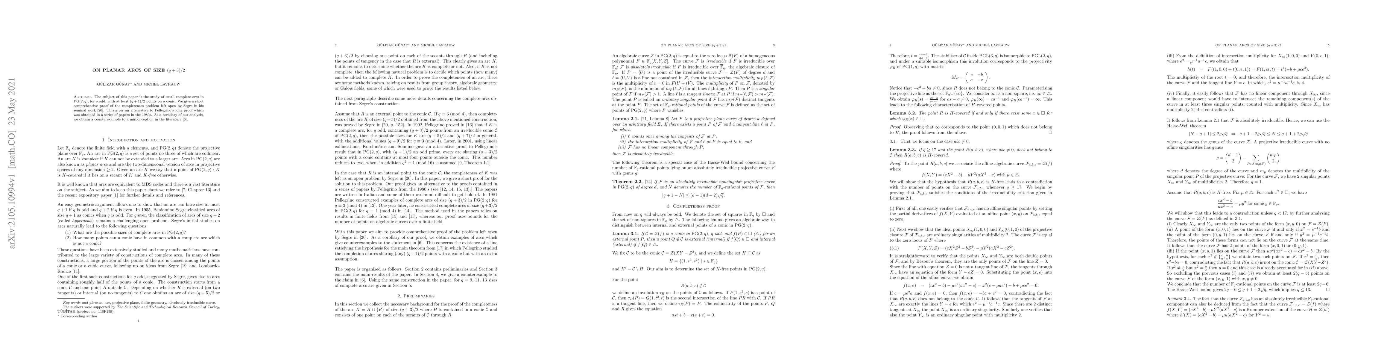 This paper proves a long-standing problem in projective geometry, showing that small complete arcs exist in certain configurations of a 2D space with odd number of points, resolving a question left open by Segre.