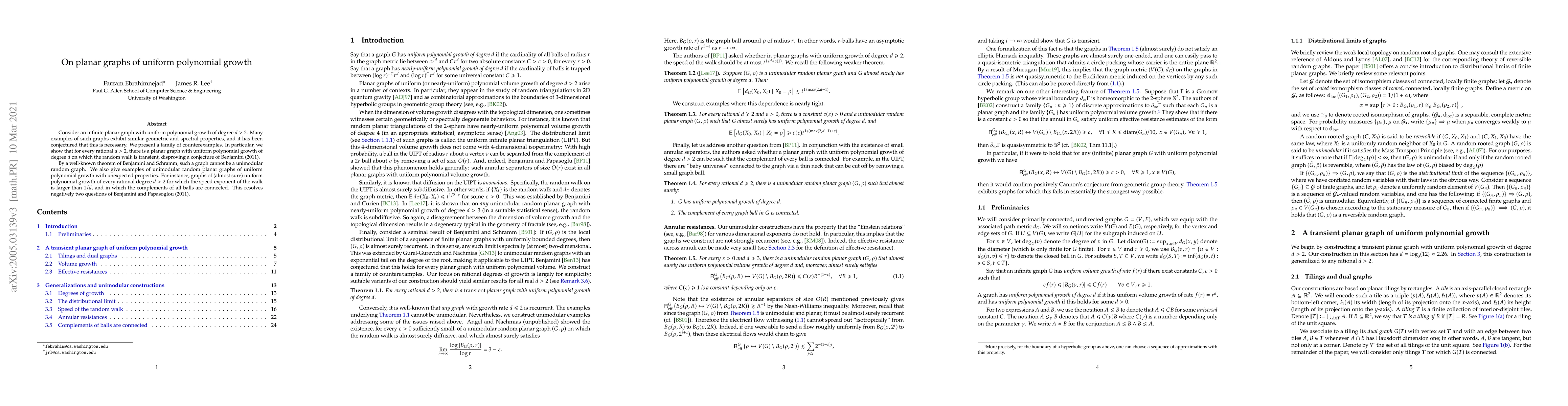 This paper presents counterexamples to conjectures about planar graphs with uniform polynomial growth, showing that not all such graphs share similar geometric and spectral properties. It disproves a conjecture by Benjamini (2011) by constructing planar graphs with transient random walks, and provides examples of unimodular random planar graphs with unexpected properties.