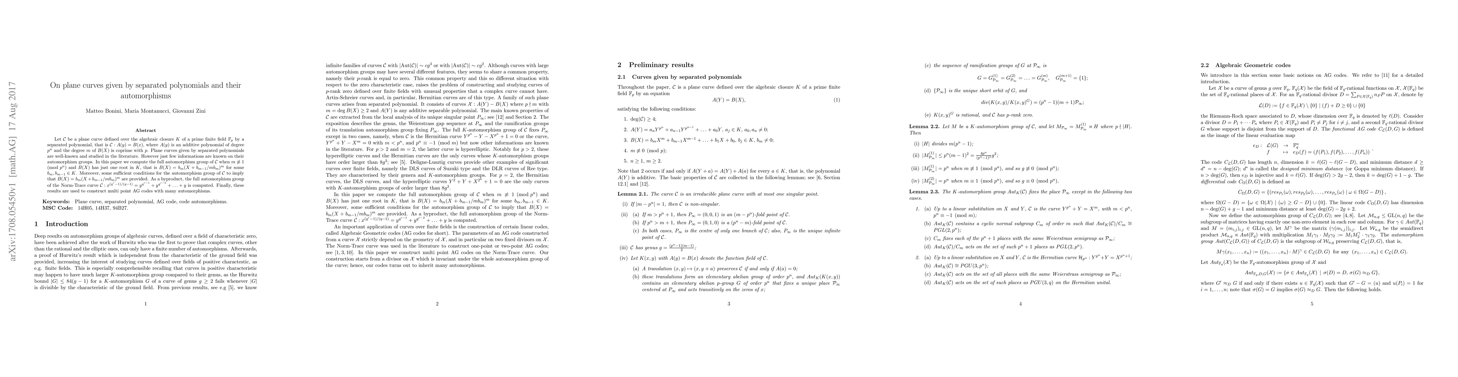 This paper investigates the automorphism groups of plane curves defined by separated polynomials, specifically when the polynomial's degree conditions are met. It computes the full automorphism group under certain conditions and uses these findings to construct multi-point AG codes with enhanced properties.