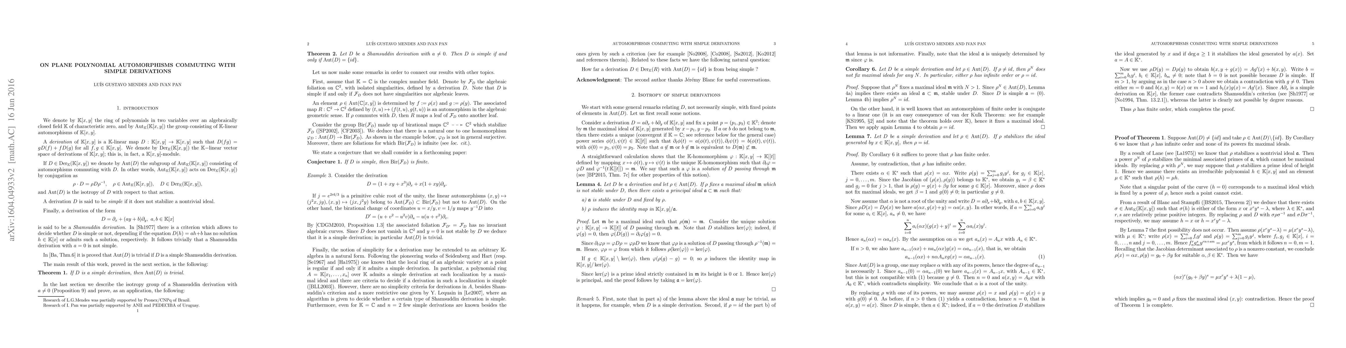 We consider the subgroup Aut(D) consisting of automorphisms of K[x,y] commuting with a derivation D, where K is an algebraically closed field of characteristic 0. We prove that if D is simple (i.e. D does not stabilize non-trivial ideals), then Aut(D)=1, in the case where D is of Shamsuddin type this result was proven by R.Baltazar in 2014 (arXiv:1412.8373). Moreover, we describe Aut(D) for Shamsuddin type derivations and deduce that Aut(D)=1 for a general such derivation implies D is simple.