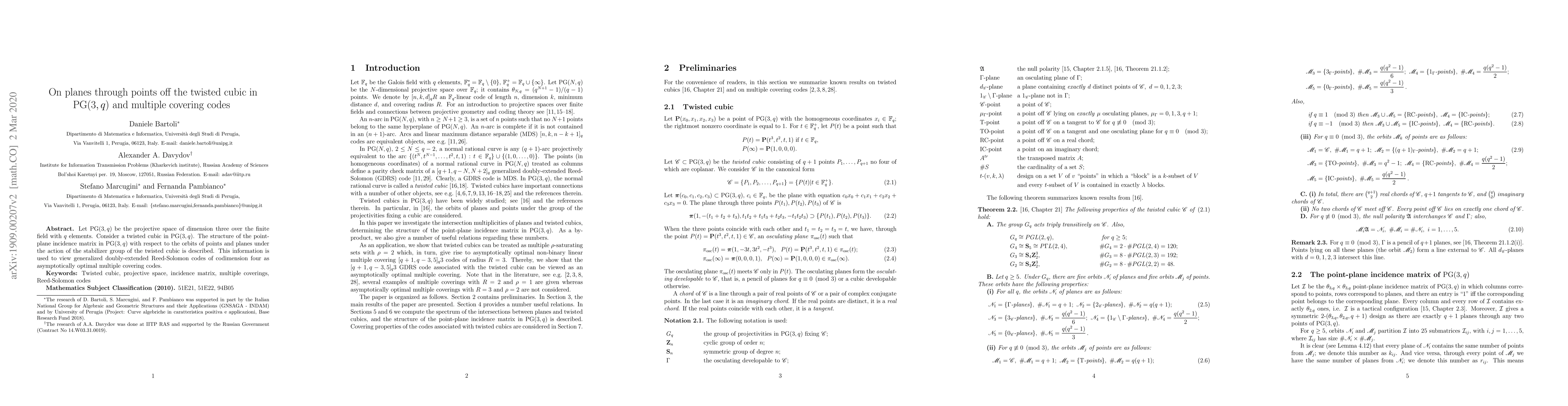 Alexander A. Davydov, Stefano Marcugini, Fernanda Pambianco