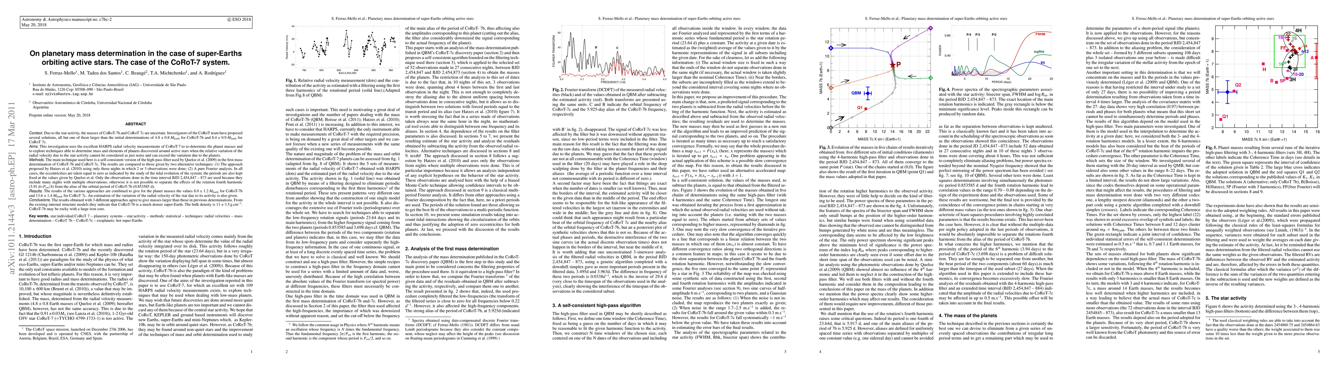This study re-determines the masses of CoRoT-7b and CoRoT-7c using HARPS radial velocity data, employing advanced filtering techniques to account for stellar activity. The results suggest significantly higher masses than previous estimates, indicating CoRoT-7b is a dense, potentially rocky super-Earth with a large iron core.