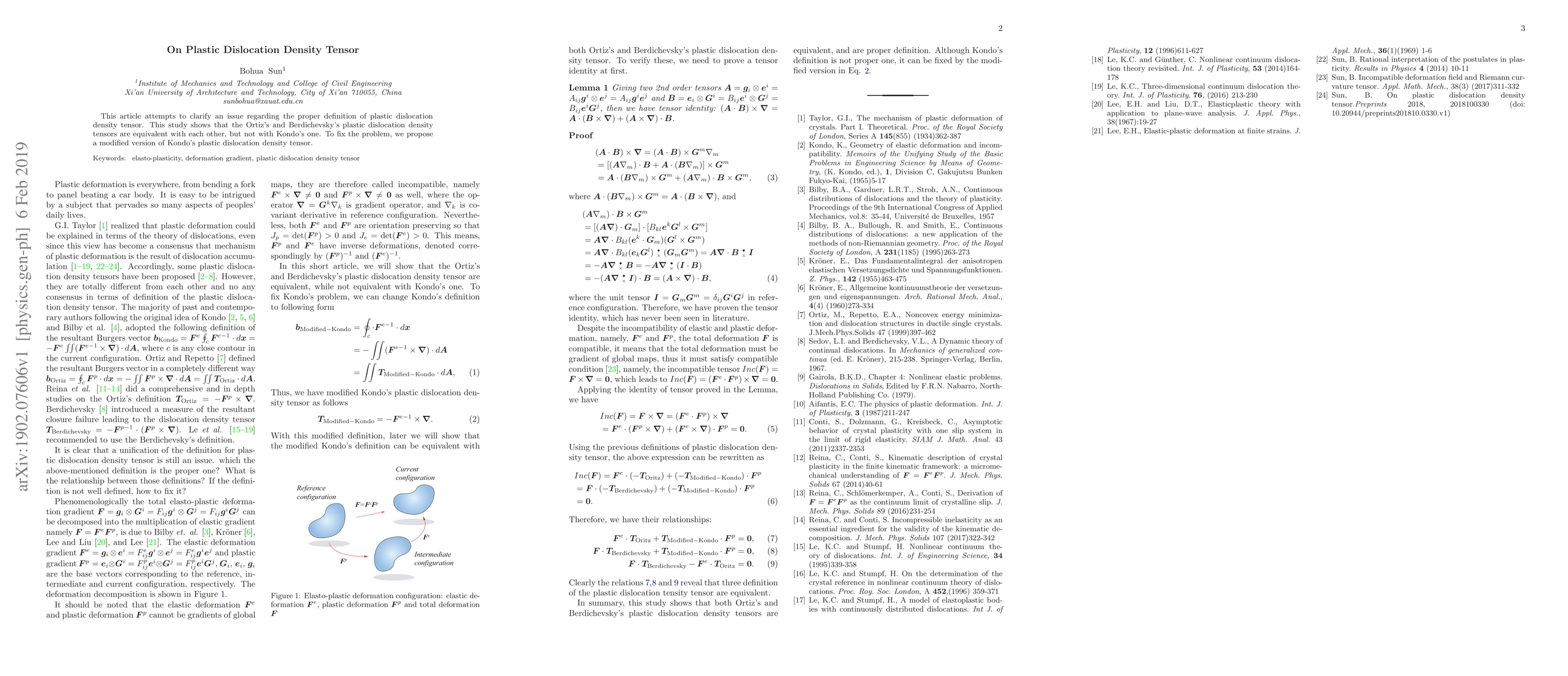 This article attempts to clarify an issue regarding the proper definition of plastic dislocation density tensor. This study shows that the Ortiz's and Berdichevsky's plastic dislocation density tensors are equivalent with each other, but not with Kondo's one. To fix the problem, we propose a modified version of Kondo's plastic dislocation density tensor.