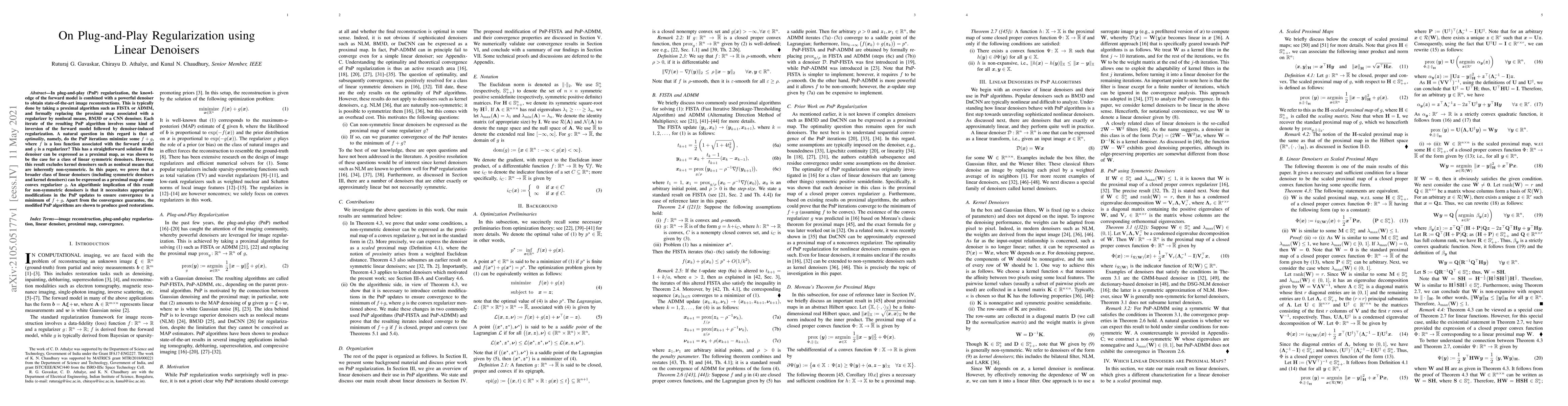 This paper explores plug-and-play (PnP) regularization using linear denoisers, proving that a broader class of linear denoisers can be expressed as a proximal map of a convex regularizer. It discusses necessary modifications to PnP algorithms for non-symmetric denoisers to ensure convergence and demonstrates the effectiveness of the modified algorithms in image reconstruction.