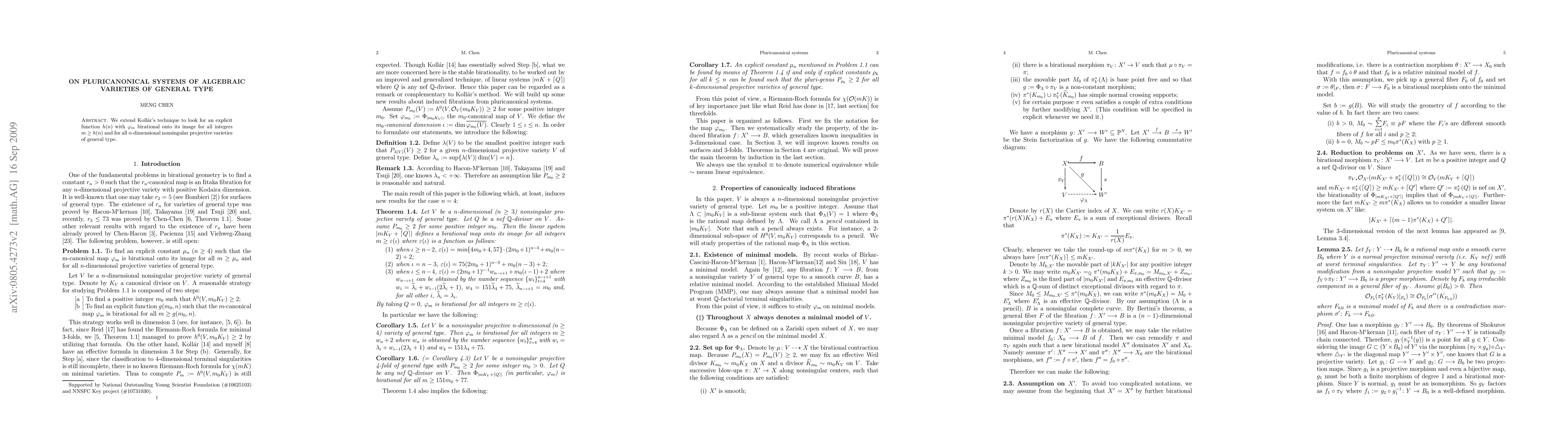 We extend Kollar's technique to look for an explicit function h(n) with phi_m birational onto its image for all integers $m\geq h(n)$ and for all n-dimensional nonsingular projective varieties of general type.