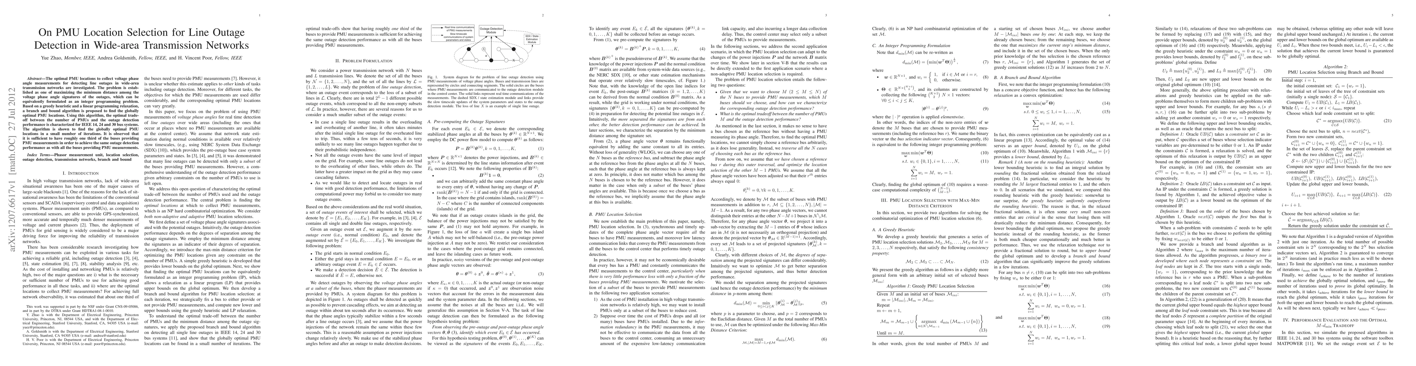 This paper investigates optimal placement of Phasor Measurement Units (PMUs) to detect line outages in wide-area transmission networks. A branch and bound algorithm is proposed to find globally optimal PMU locations, demonstrating that roughly one third of the buses need PMU measurements for effective outage detection.