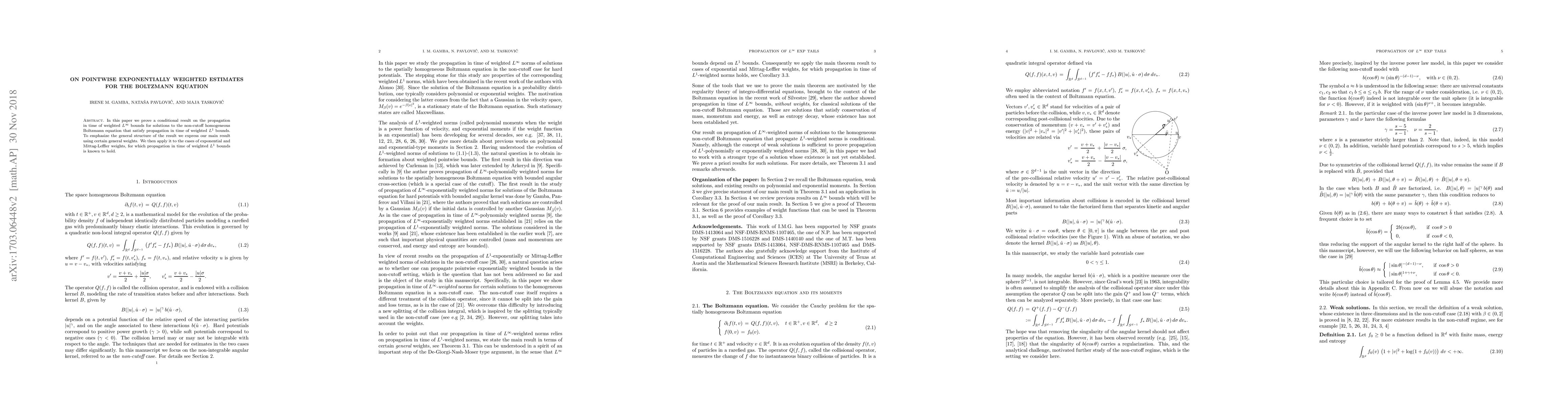 This paper establishes time-dependent weighted $L^\infty$ bounds for solutions of the non-cutoff homogeneous Boltzmann equation, leveraging the propagation of weighted $L^1$ bounds. The results are applied to exponential and Mittag-Leffler weights.