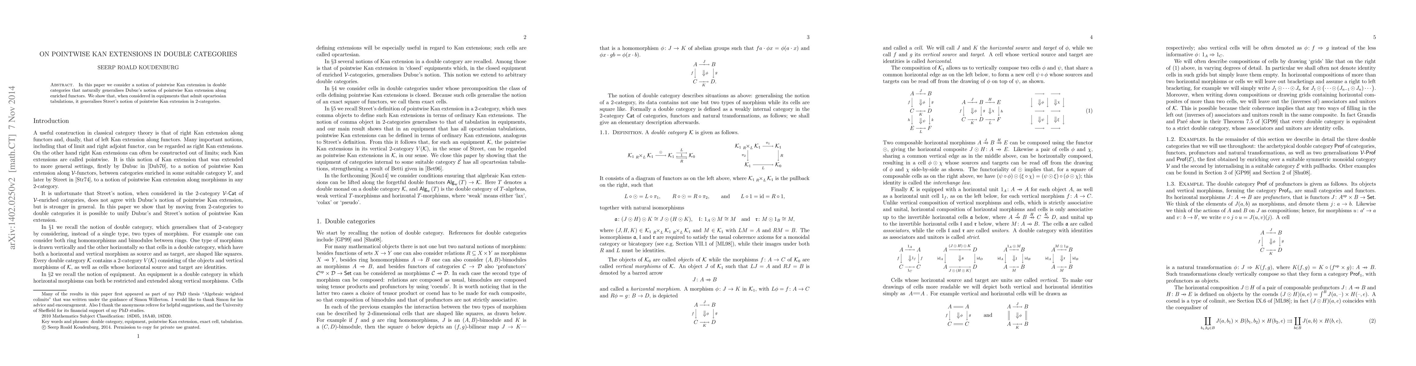This paper introduces a generalized concept of pointwise Kan extension in double categories, extending Dubuc's notion for enriched functors and Street's notion for 2-categories in equipments with opcartesian tabulations. The study highlights the broader applicability of this extension in categorical structures.