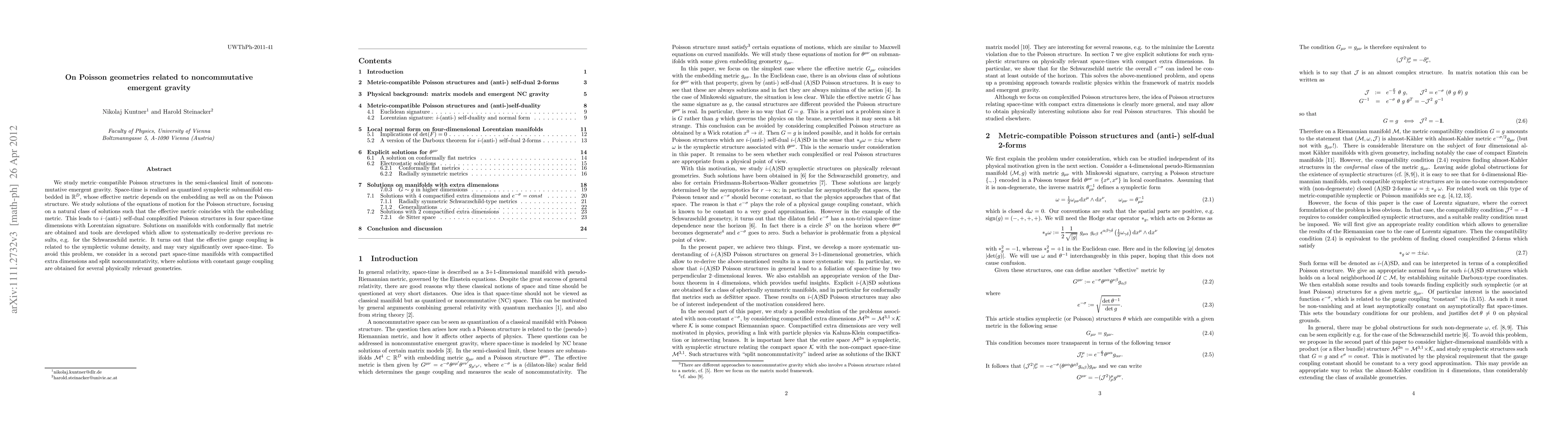 This paper investigates metric-compatible Poisson structures in noncommutative emergent gravity, revealing effective metrics tied to both embedding and Poisson structure. It finds solutions leading to self-dual Poisson structures in four dimensions, and explores compactified extra dimensions to achieve constant gauge coupling.