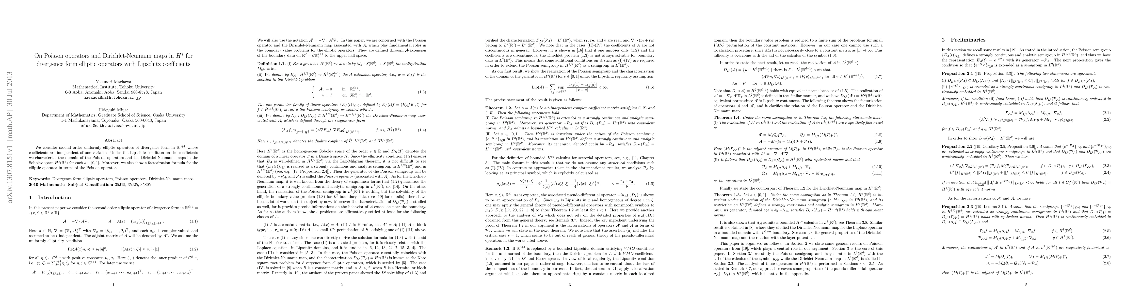 We consider second order uniformly elliptic operators of divergence form in $\R^{d+1}$ whose coefficients are independent of one variable. Under the Lipschitz condition on the coefficients we characterize the domain of the Poisson operators and the Dirichlet-Neumann maps in the Sobolev space $H^s(\R^d)$ for each $s\in [0,1]$. Moreover, we also show a factorization formula for the elliptic operator in terms of the Poisson operator.