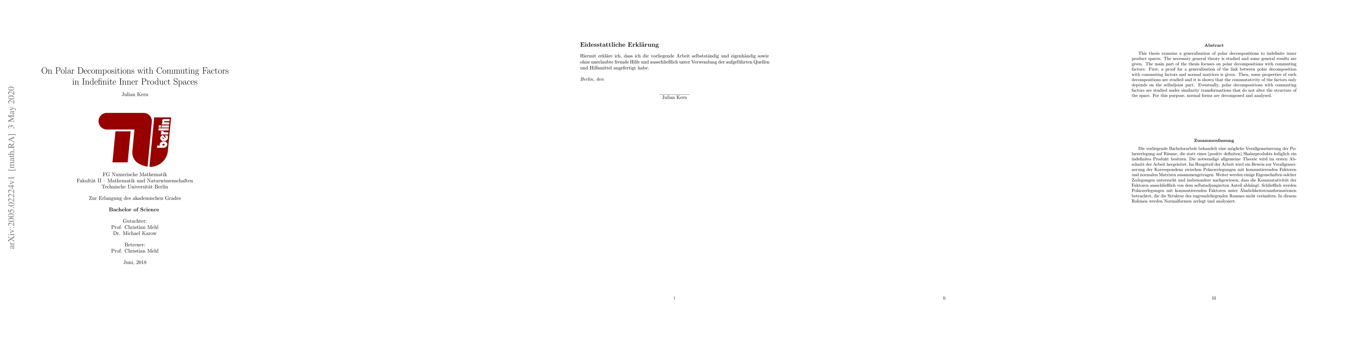 This paper generalizes polar decompositions to indefinite inner product spaces and explores polar decompositions with commuting factors. It establishes a connection between such decompositions and normal matrices, and analyzes the properties and effects of similarity transformations on these decompositions.