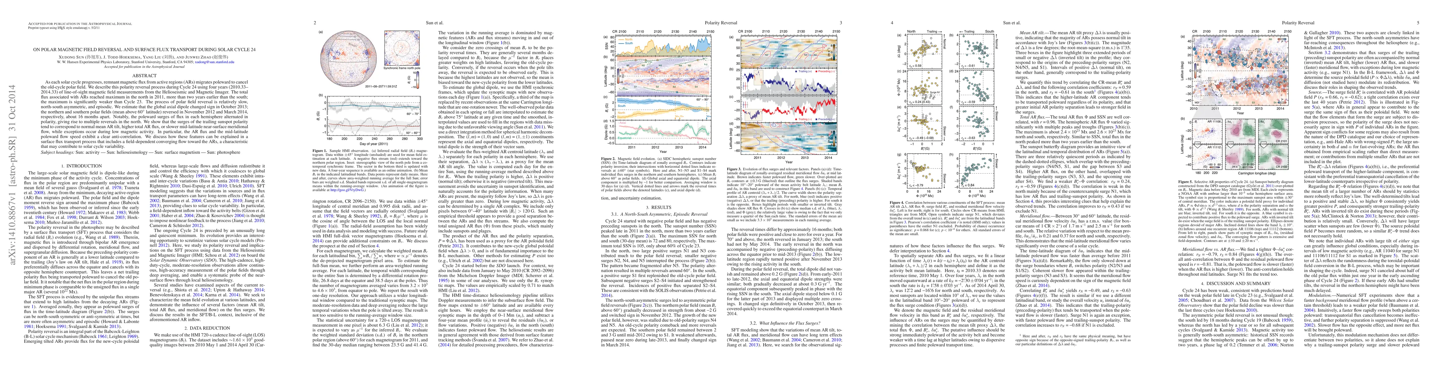 This paper investigates the polar magnetic field reversal and surface flux transport during Solar Cycle 24, noting a north-south asymmetric and episodic reversal process. The study finds that the polar fields reversed in November 2012 and March 2014, with the northern field exhibiting multiple reversals, and discusses how these reversals correlate with surface flux transport mechanisms.