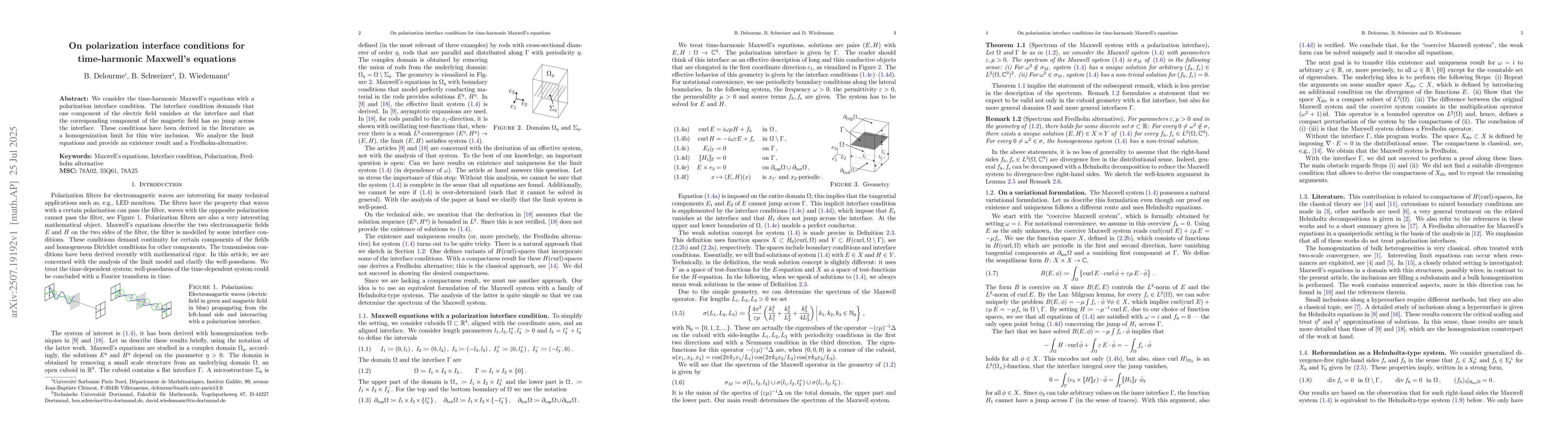 We consider the time-harmonic Maxwell's equations with a polarization interface condition. The interface condition demands that one component of the electric field vanishes at the interface and that the corresponding component of the magnetic field has no jump across the interface. These conditions have been derived in the literature as a homogenization limit for thin wire inclusion. We analyze the limit equations and provide an existence result and a Fredholm-alternative.