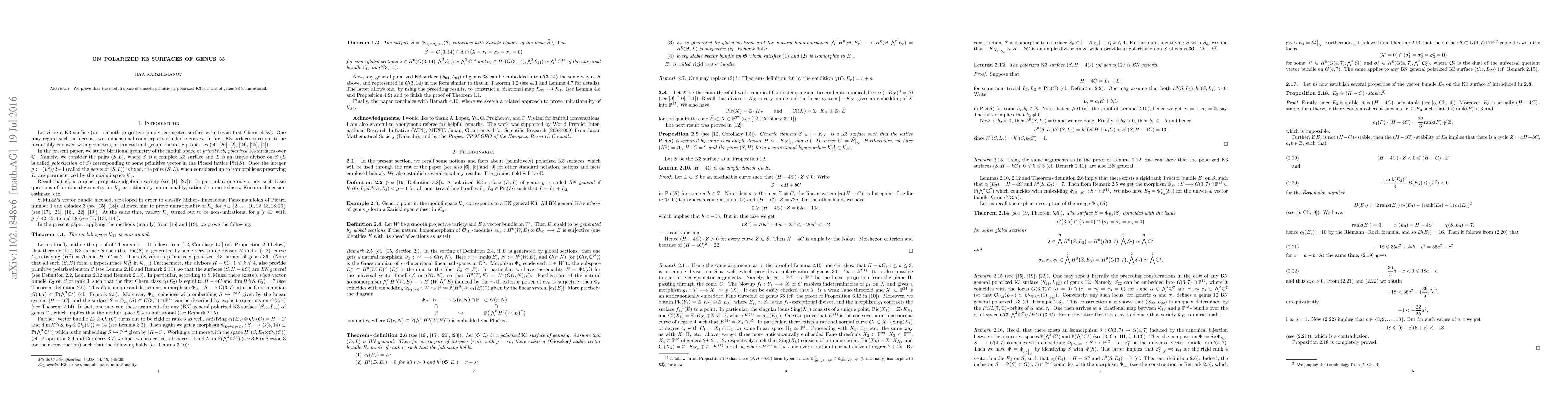 Summary: This paper demonstrates that the moduli space of smooth primitively polarized K3 surfaces with genus 33 is unirational, providing a significant result in the study of algebraic geometry. The proof contributes to understanding the structure of these complex surfaces.