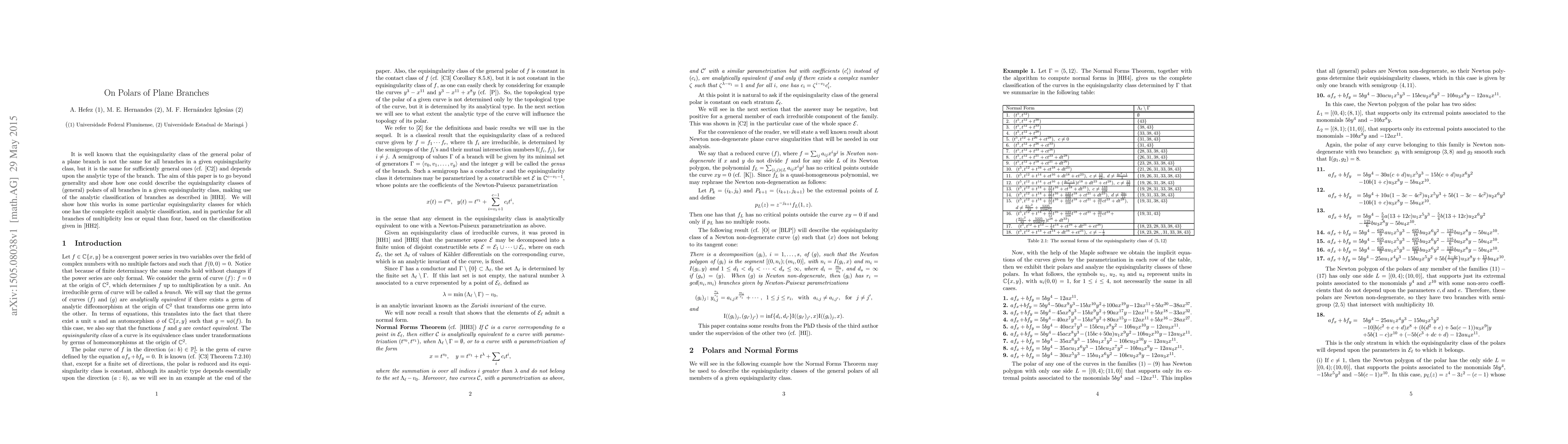 This work builds upon and extends previous research by the authors, offering a more detailed and systematic approach to understanding the relationship between plane branches and their polars, specifically focusing on the equisingularity classes of polars.
