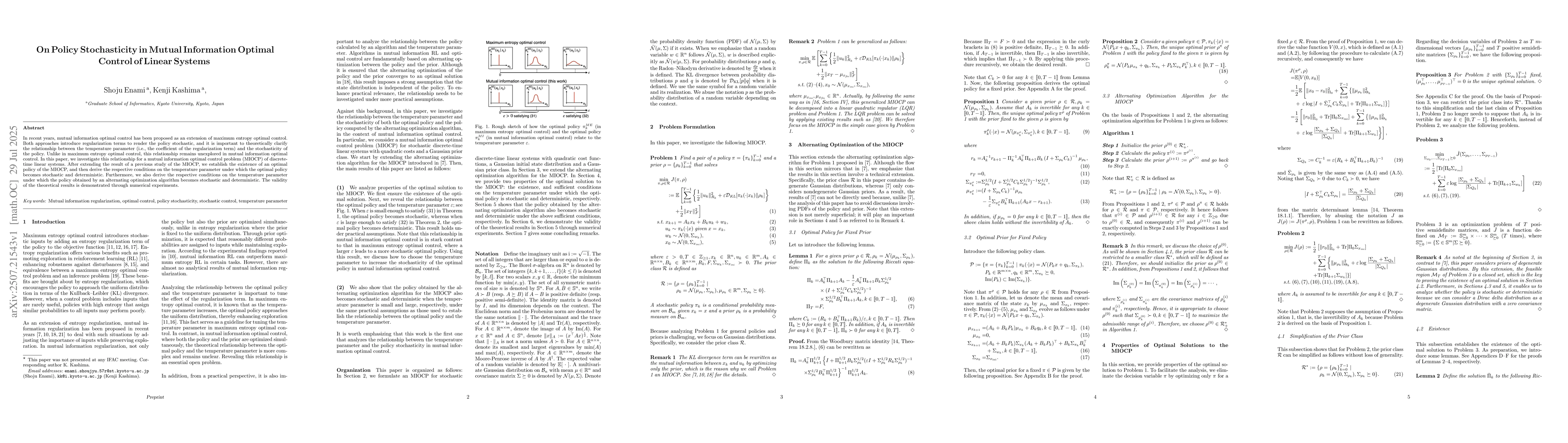 In recent years, mutual information optimal control has been proposed as an extension of maximum entropy optimal control. Both approaches introduce regularization terms to render the policy stochastic, and it is important to theoretically clarify the relationship between the temperature parameter (i.e., the coefficient of the regularization term) and the stochasticity of the policy. Unlike in maximum entropy optimal control, this relationship remains unexplored in mutual information optimal control. In this paper, we investigate this relationship for a mutual information optimal control problem (MIOCP) of discrete-time linear systems. After extending the result of a previous study of the MIOCP, we establish the existence of an optimal policy of the MIOCP, and then derive the respective conditions on the temperature parameter under which the optimal policy becomes stochastic and deterministic. Furthermore, we also derive the respective conditions on the temperature parameter under which the policy obtained by an alternating optimization algorithm becomes stochastic and deterministic. The validity of the theoretical results is demonstrated through numerical experiments.