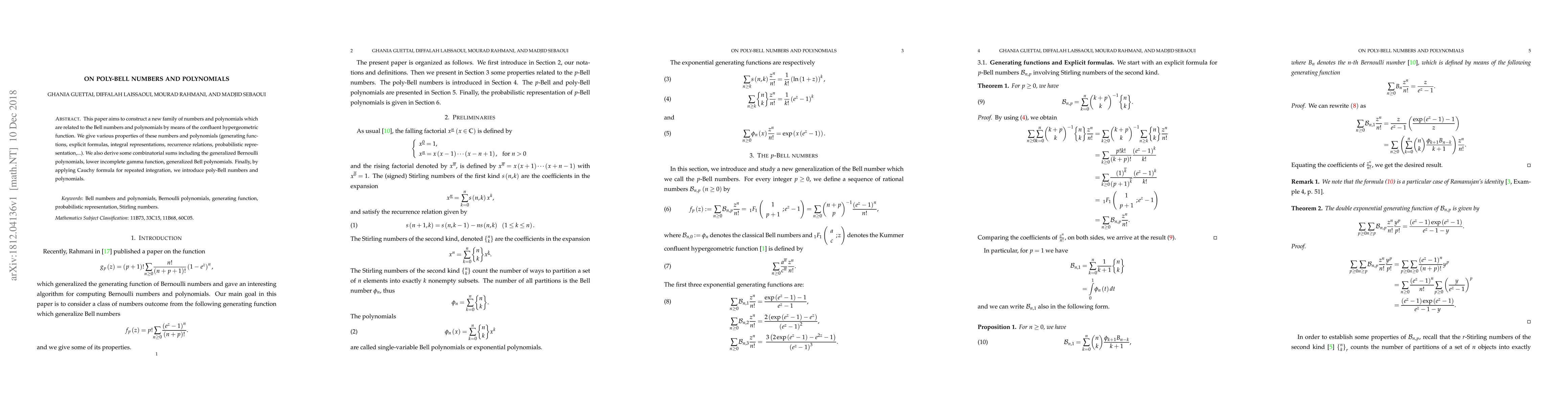 This paper introduces a novel family of poly-Bell numbers and polynomials linked to Bell numbers via confluent hypergeometric functions, providing generating functions, recurrence relations, and combinatorial sums, and using the Cauchy formula for repeated integration.
