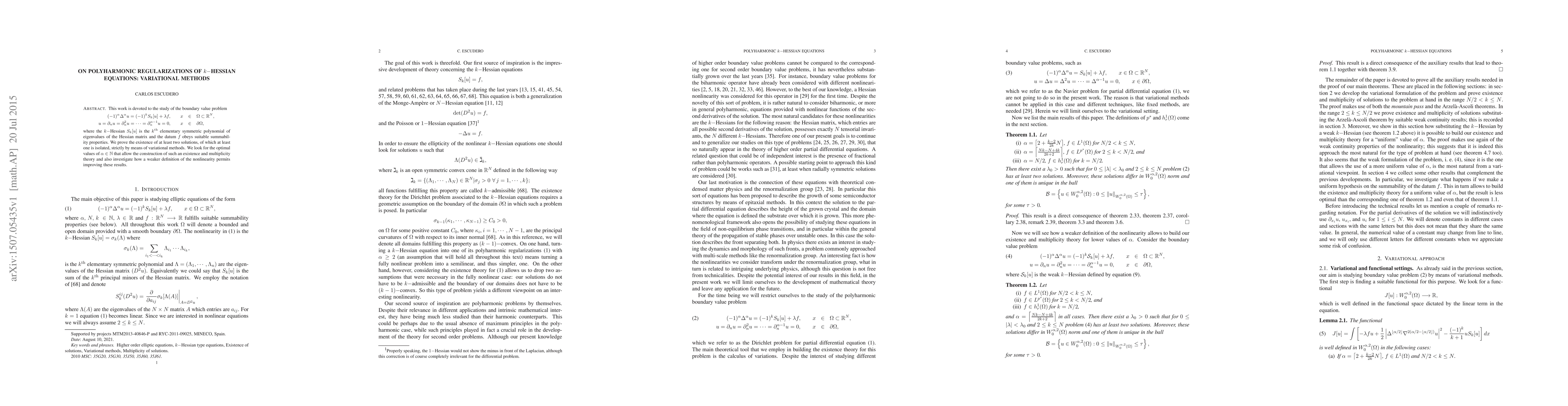 This work is devoted to the study of the boundary value problem \begin{eqnarray}\nonumber (-1)^\alpha \Delta^\alpha u = (-1)^k S_k[u] + \lambda f, \qquad x &\in& \Omega \subset \mathbb{R}^N, \\ \nonumber u = \partial_n u = \partial_n^2 u = \cdots = \partial_n^{\alpha-1} u = 0, \qquad x &\in& \partial \Omega, \end{eqnarray} where the $k-$Hessian $S_k[u]$ is the $k^{\mathrm{th}}$ elementary symmetric polynomial of eigenvalues of the Hessian matrix and the datum $f$ obeys suitable summability properties. We prove the existence of at least two solutions, of which at least one is isolated, strictly by means of variational methods. We look for the optimal values of $\alpha \in \mathbb{N}$ that allow the construction of such an existence and multiplicity theory and also investigate how a weaker definition of the nonlinearity permits improving these results.