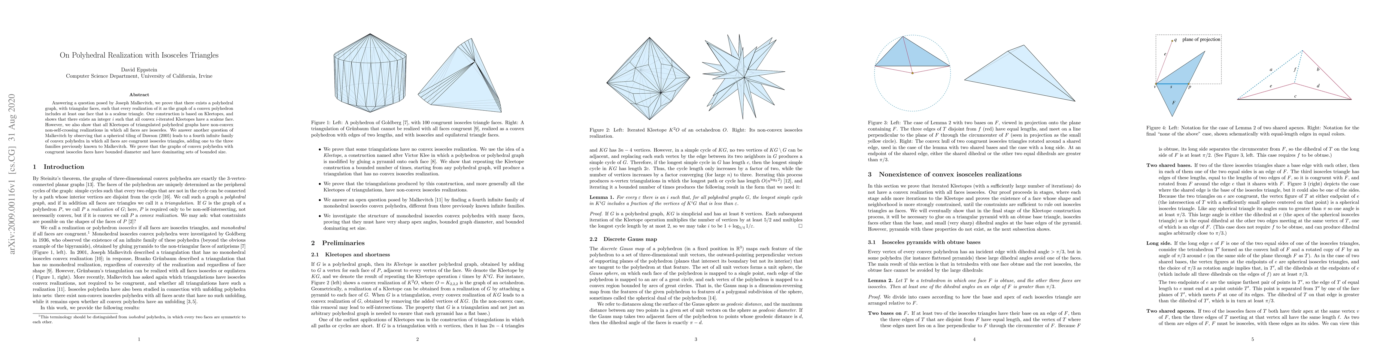 This paper proves the existence of a polyhedral graph with triangular faces where any convex polyhedral realization includes at least one scalene triangle, based on Kleetopes. It also shows that all Kleetopes of triangulated polyhedral graphs can be realized non-convexly with all isosceles faces, and identifies a new infinite family of convex polyhedra with congruent isosceles faces.