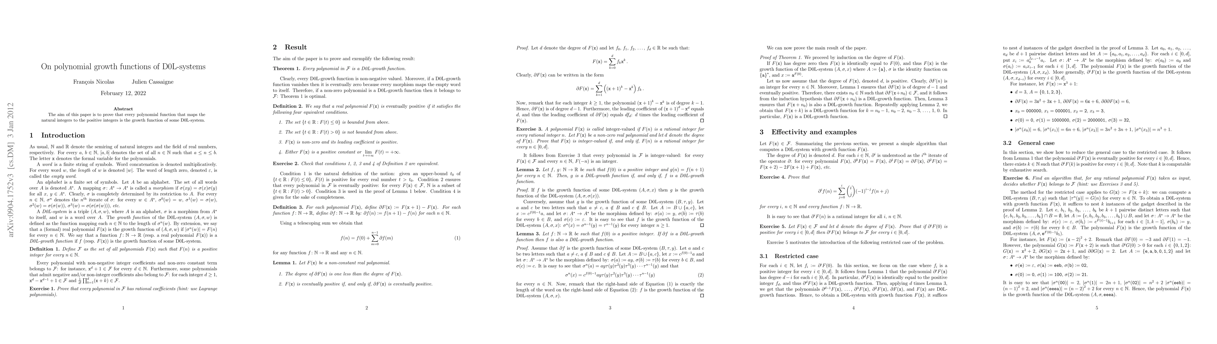 The aim of this paper is to prove that every polynomial function that maps the natural integers to the positive integers is the growth function of some D0L-system.