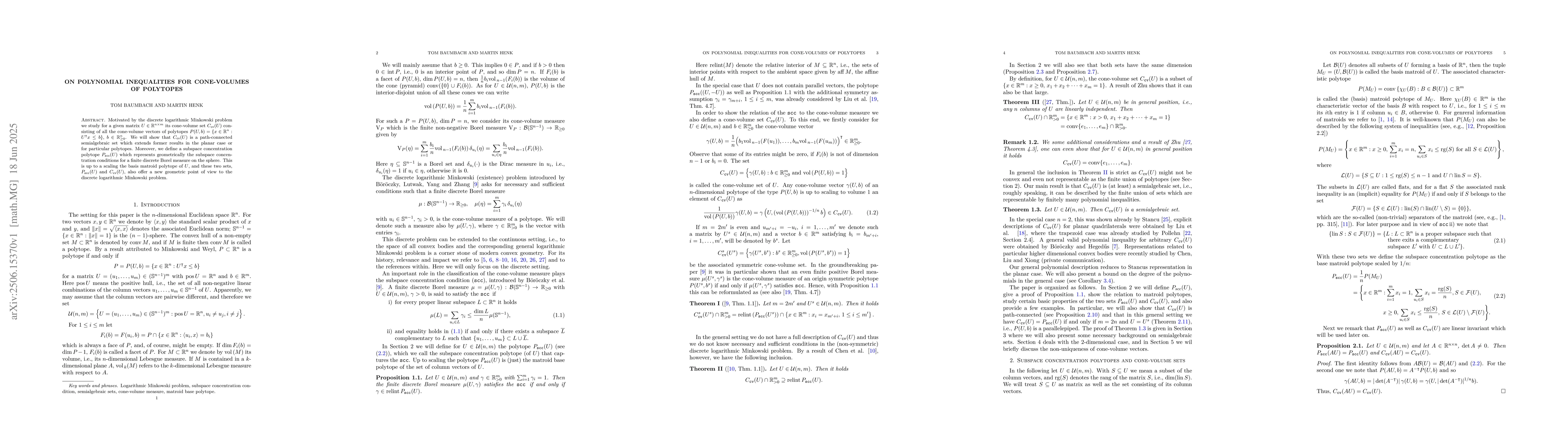 Motivated by the discrete logarithmic Minkowski problem we study for a given matrix $U\in\mathbb{R}^{n\times m}$ its cone-volume set $C_{\tt cv}(U)$ consisting of all the cone-volume vectors of polytopes $P(U,b)=\{ x\in\mathbb{R}^n : U^\intercal x\leq b\}$, $b\in\mathbb{R}^n_{\geq 0}$. We will show that $C_{\tt cv}(U)$ is a path-connected semialgebraic set which extends former results in the planar case or for particular polytopes. Moreover, we define a subspace concentration polytope $P_{\tt scc}(U)$ which represents geometrically the subspace concentration conditions for a finite discrete Borel measure on the sphere. This is up to a scaling the basis matroid polytope of $U$, and these two sets, $P_{\tt scc}(U)$ and $C_{\tt cv}(U)$, also offer a new geometric point of view to the discrete logarithmic Minkowski problem.