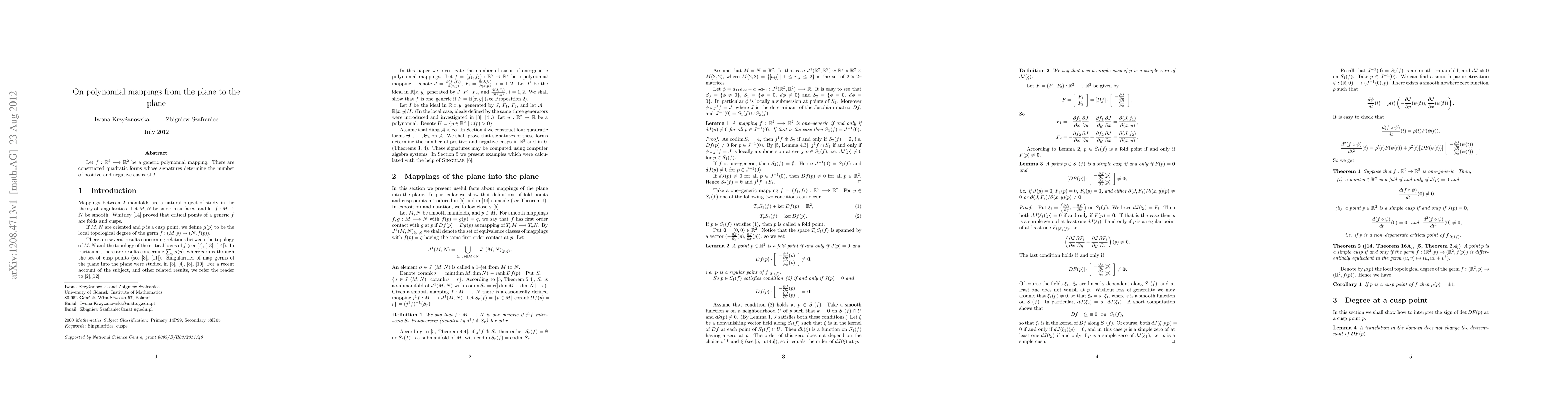 Let f be a generic polynomial mapping mapping from the plane to the plane. There are constructed quadratic forms whose signatures determine the number of positive and negative cusps of f.
