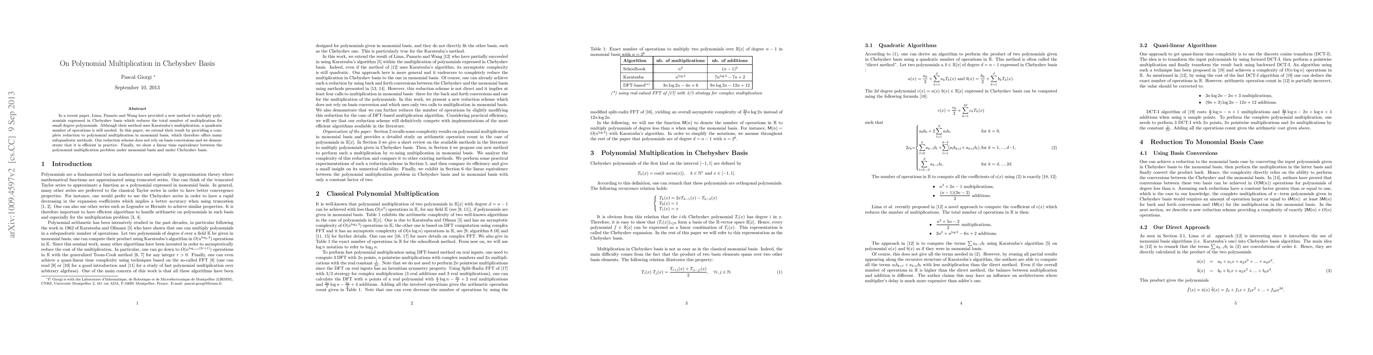 In a recent paper Lima, Panario and Wang have provided a new method to multiply polynomials in Chebyshev basis which aims at reducing the total number of multiplication when polynomials have small degree. Their idea is to use Karatsuba's multiplication scheme to improve upon the naive method but without being able to get rid of its quadratic complexity. In this paper, we extend their result by providing a reduction scheme which allows to multiply polynomial in Chebyshev basis by using algorithms from the monomial basis case and therefore get the same asymptotic complexity estimate. Our reduction allows to use any of these algorithms without converting polynomials input to monomial basis which therefore provide a more direct reduction scheme then the one using conversions. We also demonstrate that our reduction is efficient in practice, and even outperform the performance of the best known algorithm for Chebyshev basis when polynomials have large degree. Finally, we demonstrate a linear time equivalence between the polynomial multiplication problem under monomial basis and under Chebyshev basis.