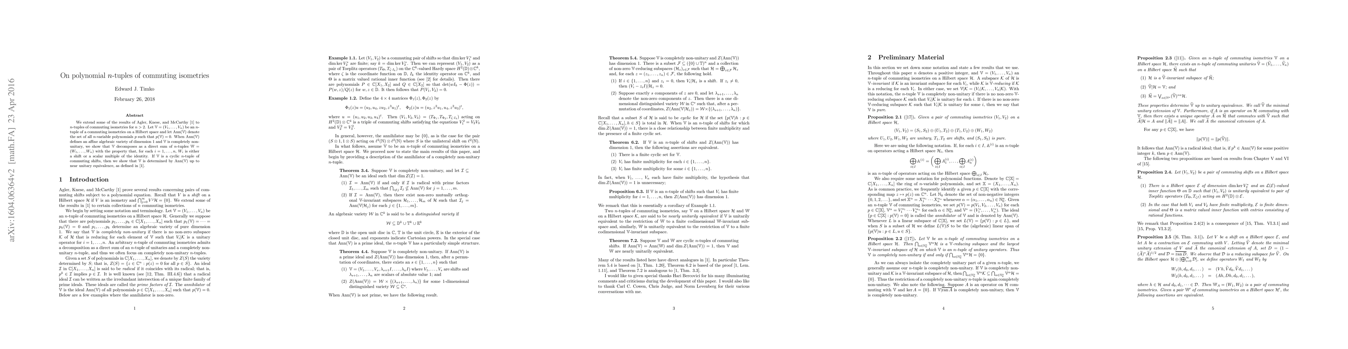 This paper extends results on commuting isometries to $n$-tuples for $n>2$, showing that under certain conditions, such $n$-tuples decompose into shifts or scalar multiples of identities. It also establishes near unitary equivalence determination of cyclic commuting shift tuples by their zero polynomial sets.