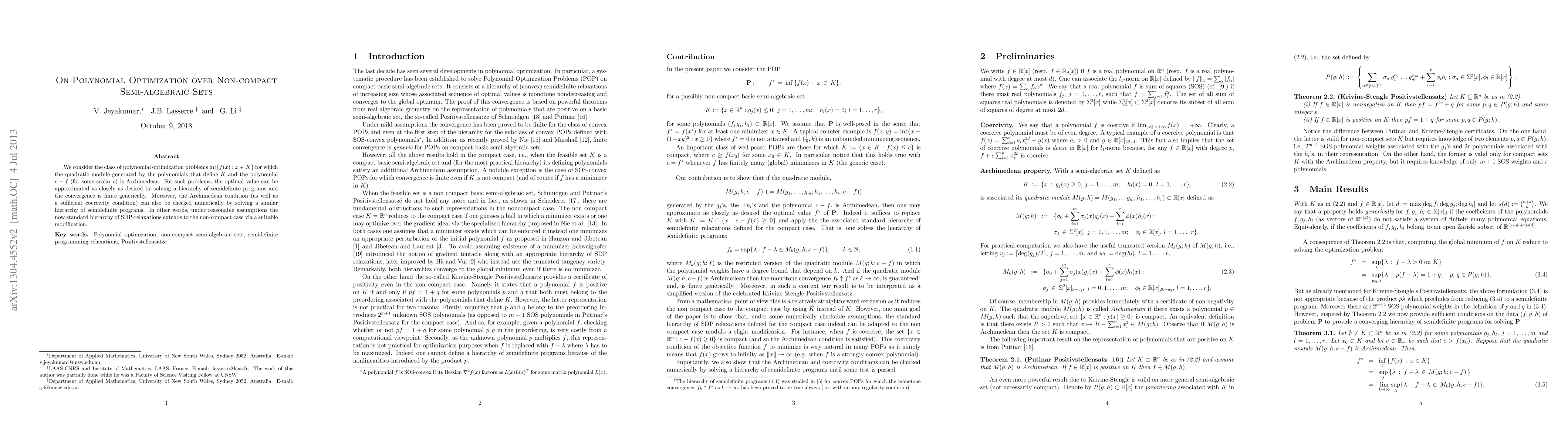 Researchers show that polynomial optimization problems over non-compact semi-algebraic sets can be approximated closely using a hierarchy of semidefinite programs, extending the standard method to non-compact cases.