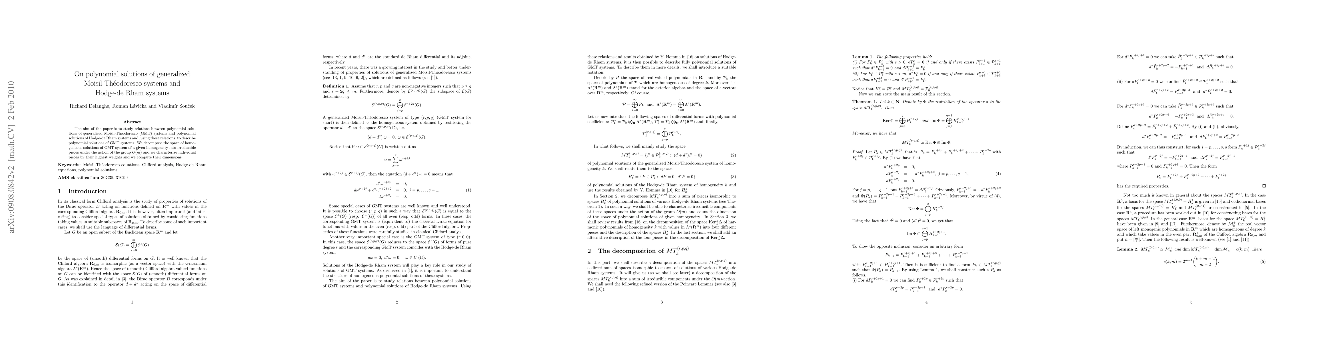 This paper explores the connections between polynomial solutions of generalized Moisil-Theodoresco systems (GMT) and Hodge-de Rham systems, aiming to describe polynomial solutions of GMT systems. It decomposes the space of homogeneous GMT solutions into irreducible components under the group O(m), characterizing them by highest weights and computing their dimensions.