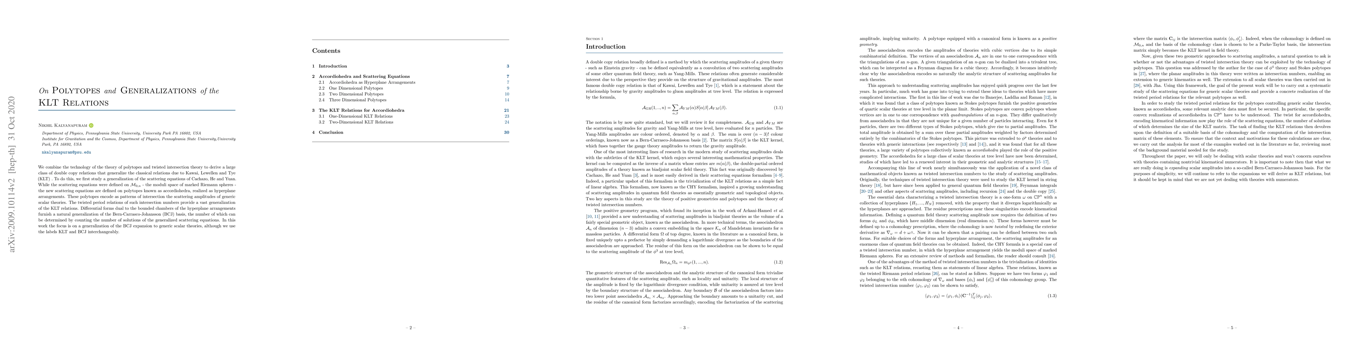 We combine the technology of the theory of polytopes and twisted intersection theory to derive a large class of double copy relations that generalize the classical relations due to Kawai, Lewellen and Tye (KLT) . To do this, we first study a generalization of the scattering equations of Cachazo, He and Yuan. While the scattering equations were defined on $\mathcal{M}_{0,n}$ - the moduli space of marked Riemann spheres - the new scattering equations are defined on polytopes known as accordiohedra, realized as hyperplane arrangements. These polytopes encode as patterns of intersection the scattering amplitudes of generic scalar theories. The twisted period relations of such intersection numbers provide a vast generalization of the KLT relations. Differential forms dual to the bounded chambers of the hyperplane arrangements furnish a natural generalization of the Bern-Carrasco-Johansson (BCJ) basis, the number of which can be determined by counting the number of solutions of the generalized scattering equations. In this work the focus is on a generalization of the BCJ expansion to generic scalar theories, although we use the labels KLT and BCJ interchangeably.