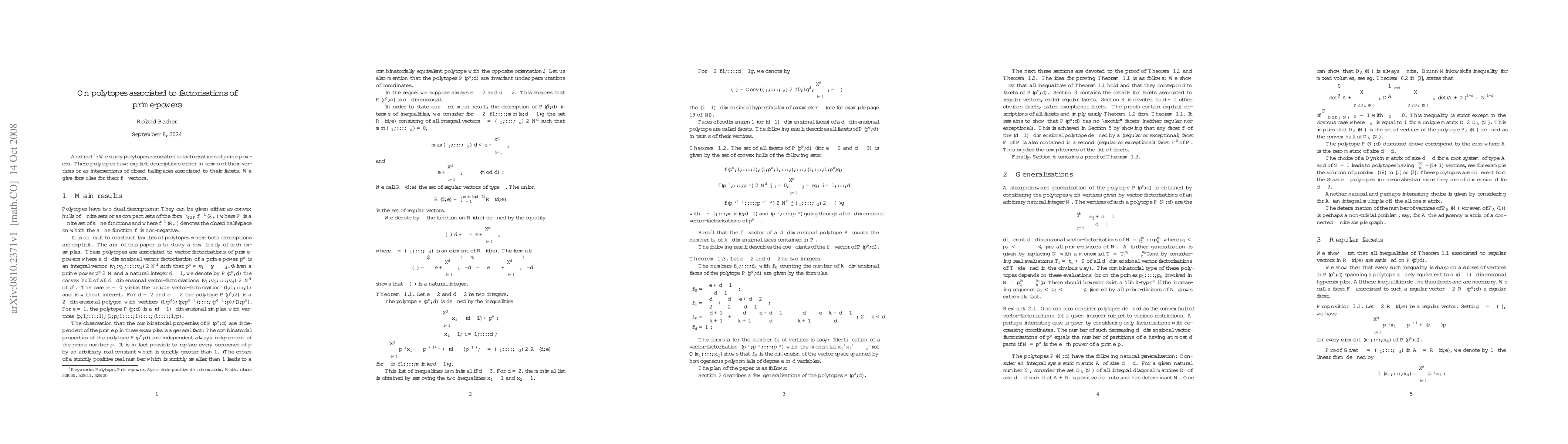 We study polytopes associated to factorisations of prime powers. These polytopes have explicit descriptions either in terms of their vertices or as intersections of closed halfspaces associated to their facets. We give formulae for their $f-$vectors.