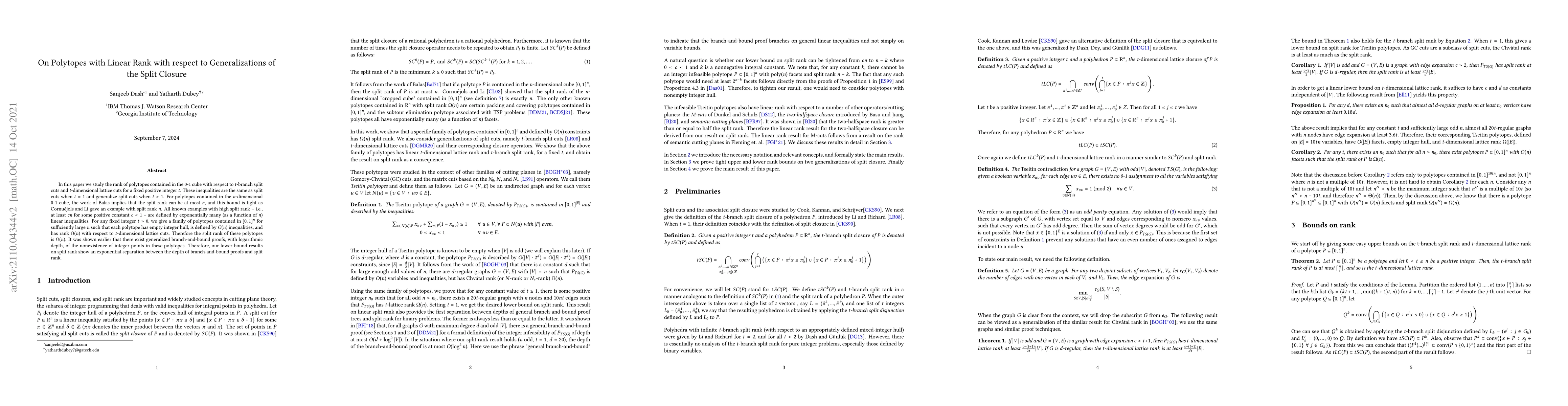 This paper investigates the rank of polytopes in the 0-1 cube with respect to $t$-branch split cuts and $t$-dimensional lattice cuts. It presents a family of polytopes with rank $\Omega(n)$ defined by $O(n)$ inequalities, demonstrating an exponential separation between the depth of branch-and-bound proofs and split rank.