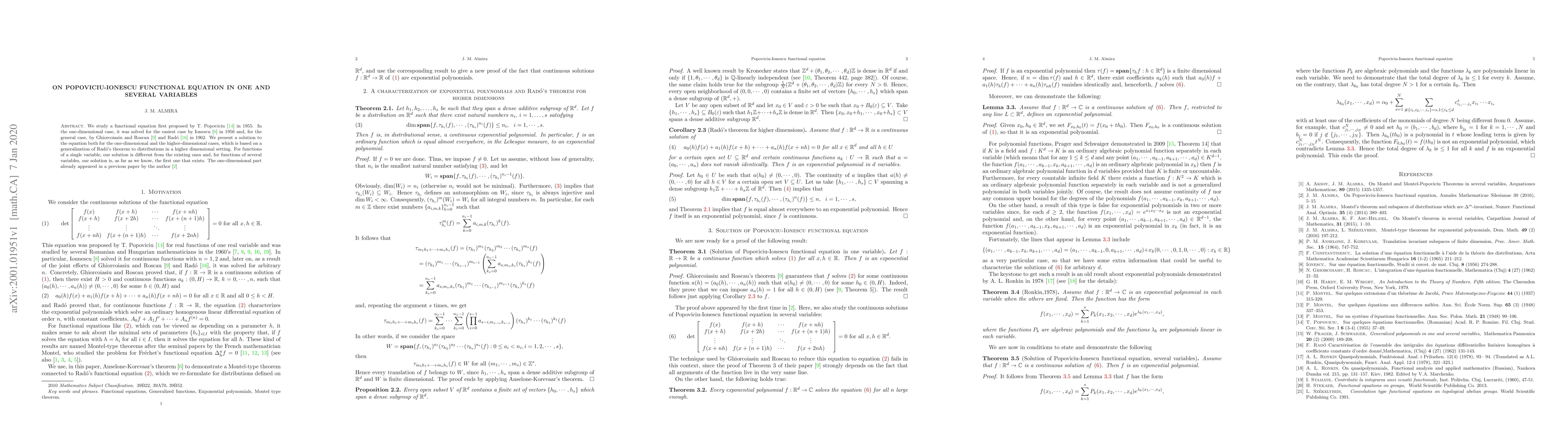 The paper extends Rad'{o}'s theorem to higher dimensions and provides solutions to the Popoviciu-Ionescu functional equation for both single and multiple variables, distinguishing it from previous solutions.