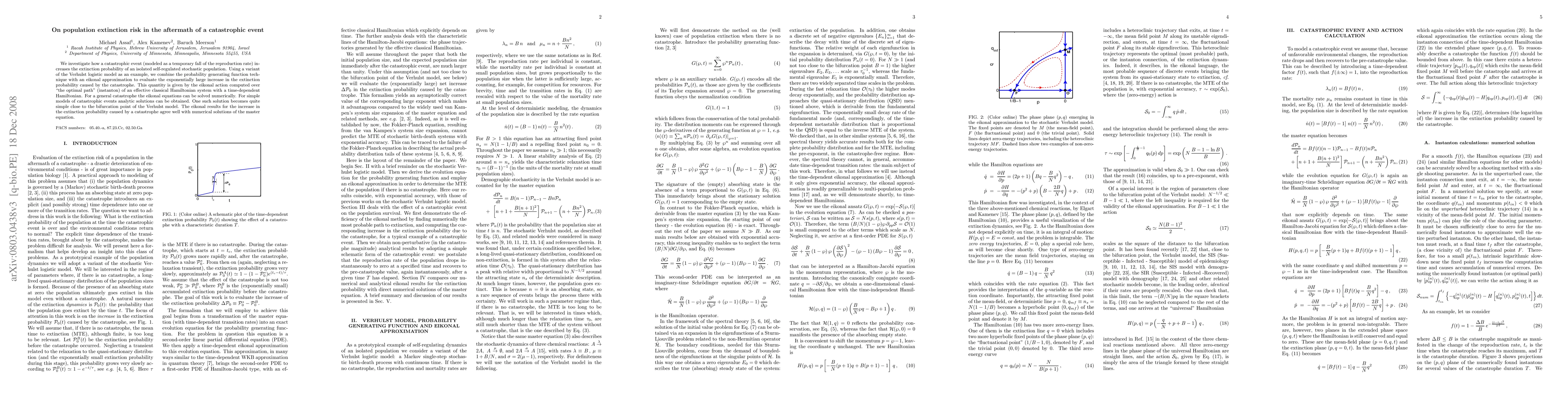 This study investigates how catastrophic events increase extinction risk in isolated populations, using a mathematical model to simulate the effects of a temporary decline in reproduction rates on population survival. The research finds that a catastrophe can significantly increase extinction probability, with some models showing an exponentially large increase in risk.