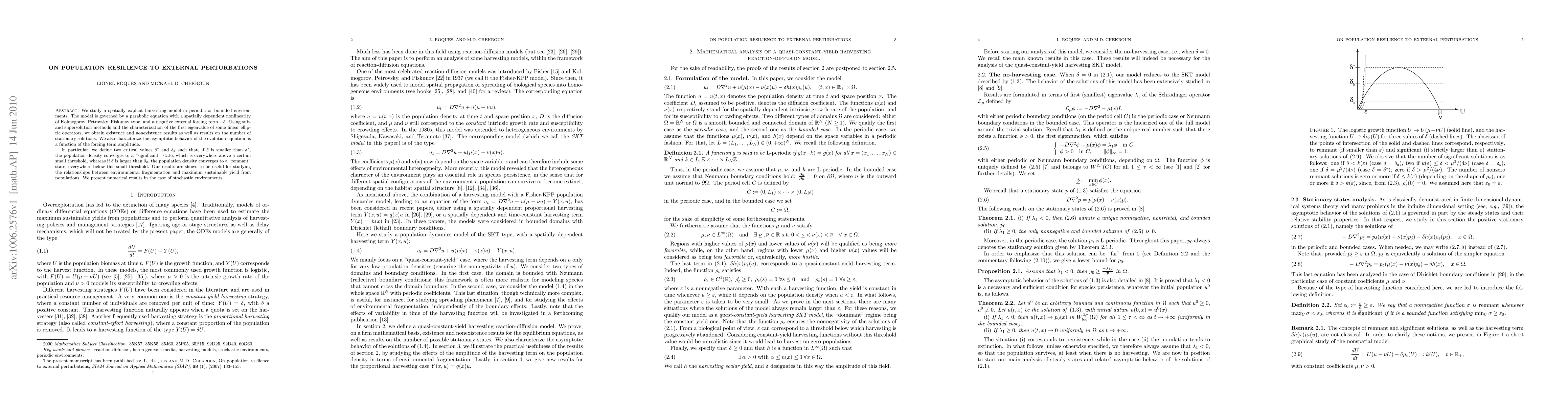 A study on population resilience to external perturbations reveals two critical values of forcing terms that determine the convergence state of population density: a significant state above a threshold or a remnant state below it.