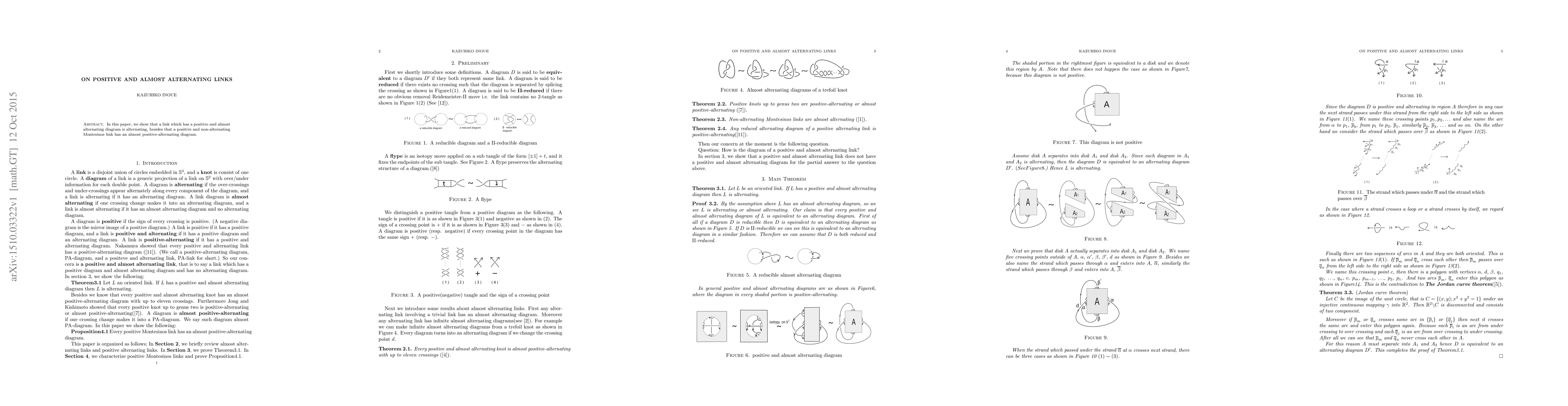 The paper introduces and proves several propositions and theorems concerning positive and almost alternating links, particularly for Montesinos links, extending existing knowledge in knot theory.