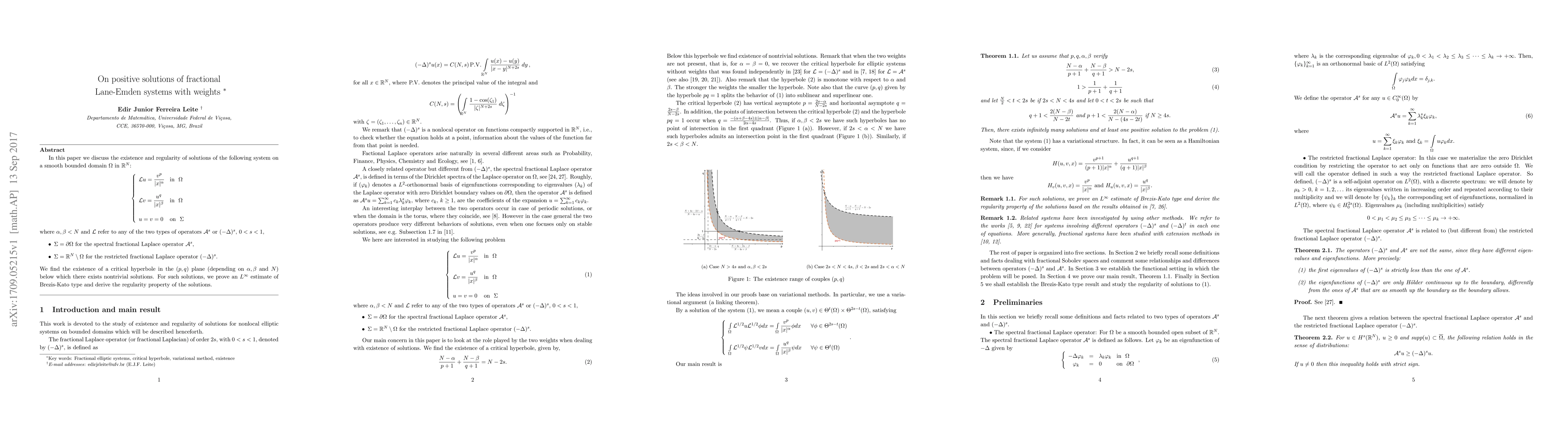 This paper investigates the existence and regularity of positive solutions for fractional Lane-Emden systems incorporating weight functions, providing insights into their mathematical properties.